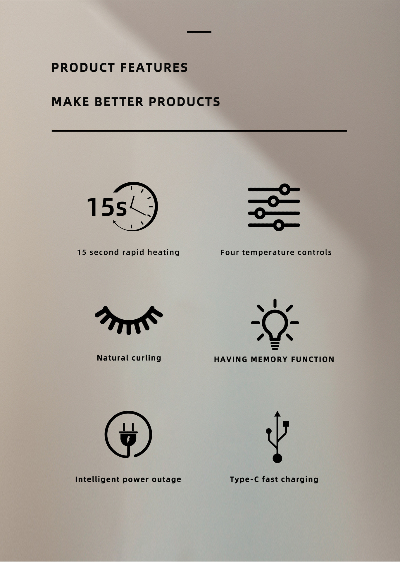 クロスボーダー電気まつげカーラー 3-in-1 交換用ブラシヘッド小型鋼管充電式加熱まつげカーラー