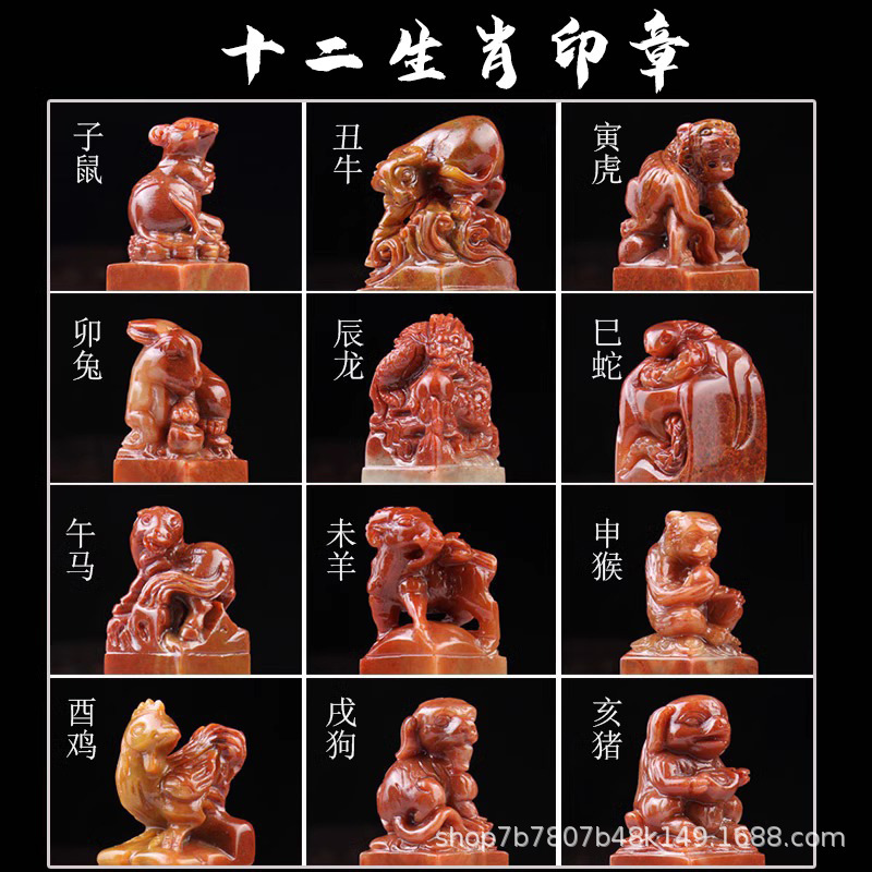 寿山石姓名印章定刻十二生肖印章书法章篆刻章纪念章印材批发