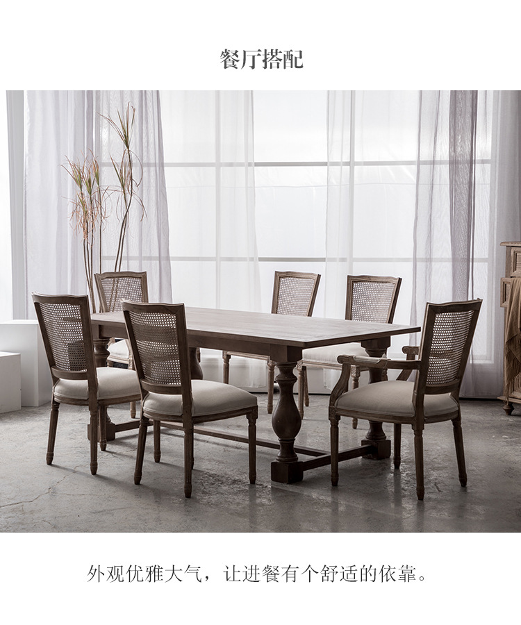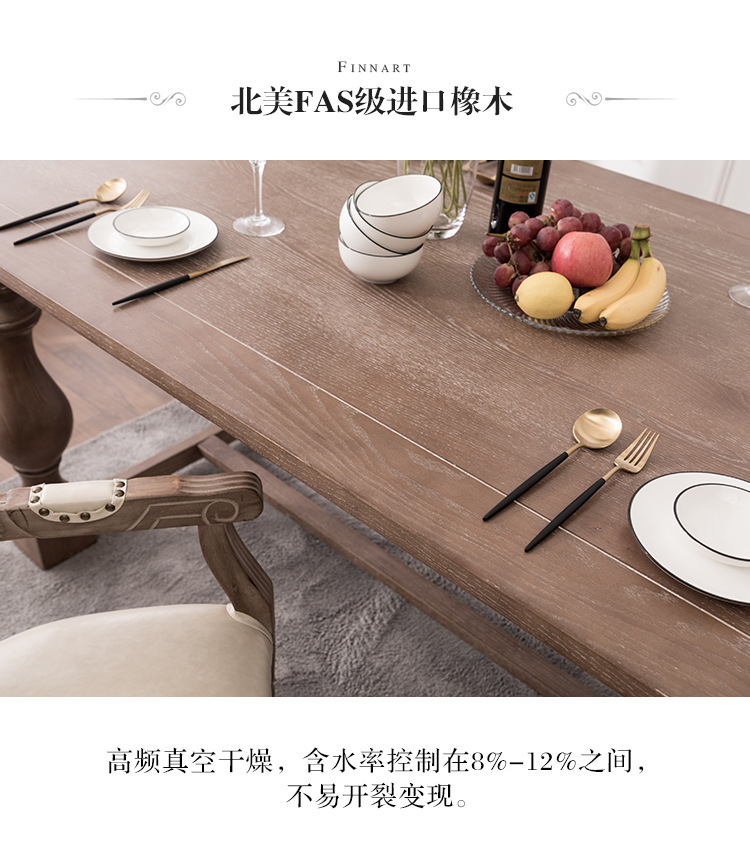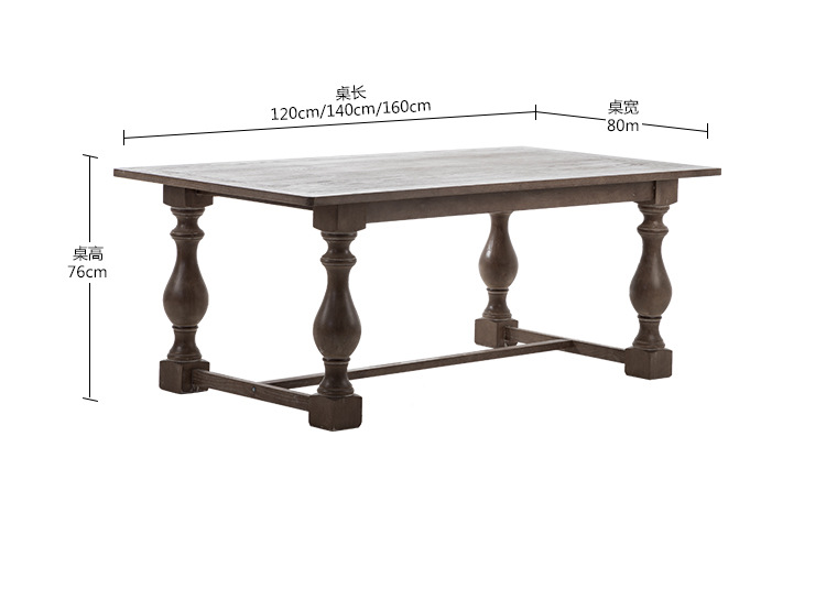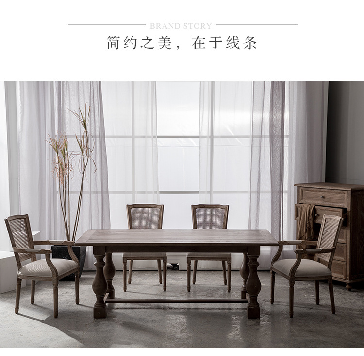美式乡村实木做旧餐桌法式婚纱影楼复古橡木家用桌子欧式民宿桌
