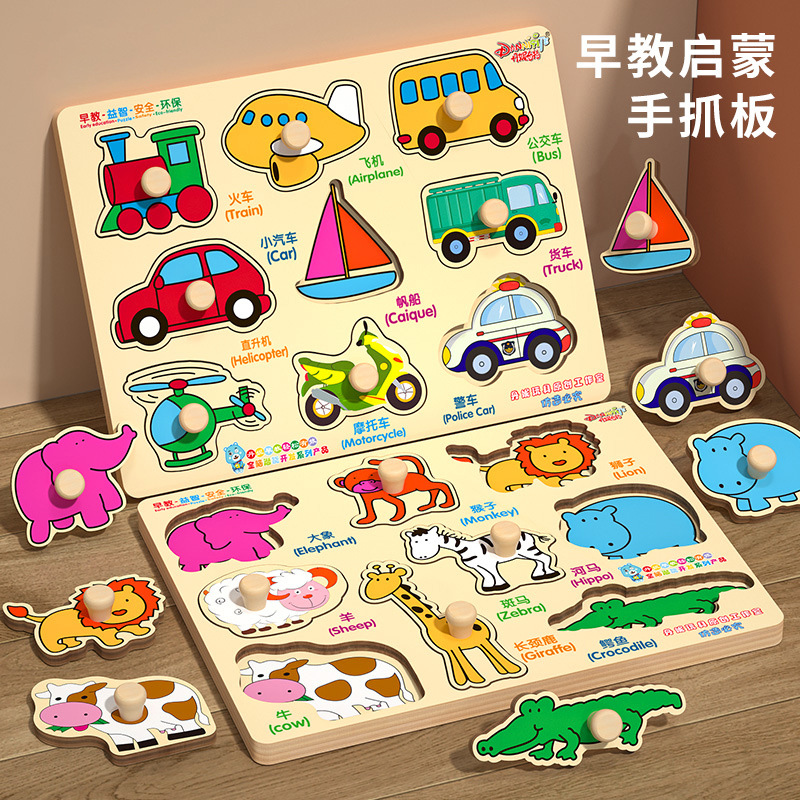 蒙氏早教知育玩具乳児児童手掴み板赤ちゃん教具精密動作訓練手掴み板認知板