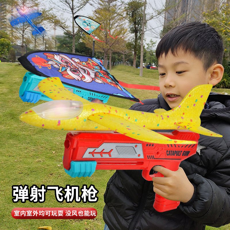 クロスボーダー爆射飛行機銃発光手投げ泡飛行機子供屋外スポーツ露店玩具卸売り
