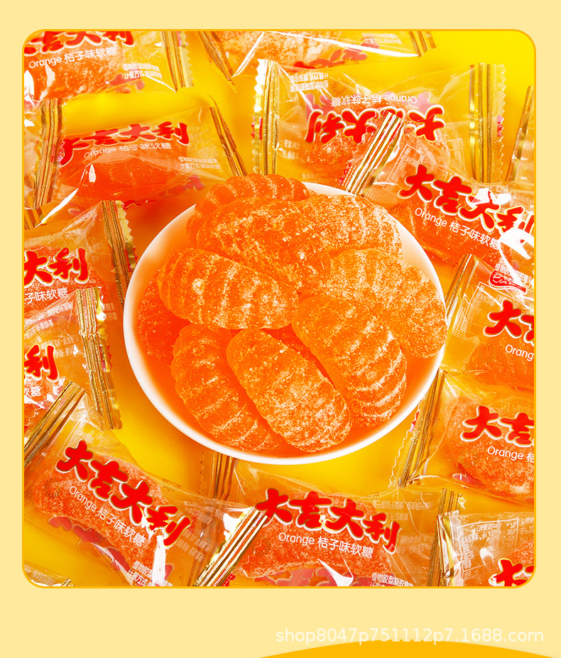 大吉イタリアみかん弁ソフトキャンディ新年旧正月の年物招待みかん味お祝いキャンディー独立包装卸売り