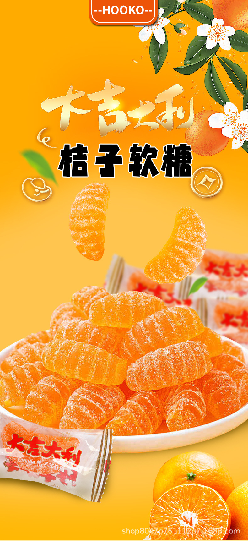 大吉大利橘子橡皮软糖老式桔子喜糖果橘瓣糖休闲怀旧小零食品批发
