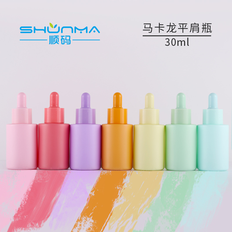 現物30mlマカロン平肩精油瓶フロストエッセンス原液分注瓶カラー円柱スポイト瓶