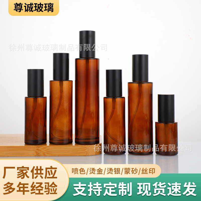 120 ミリリットル茶色ガラスエッセンスローションボトルプッシュ式ポンプヘッドスプレーボトル化粧品ボトル旅行詰め替え空ボトル