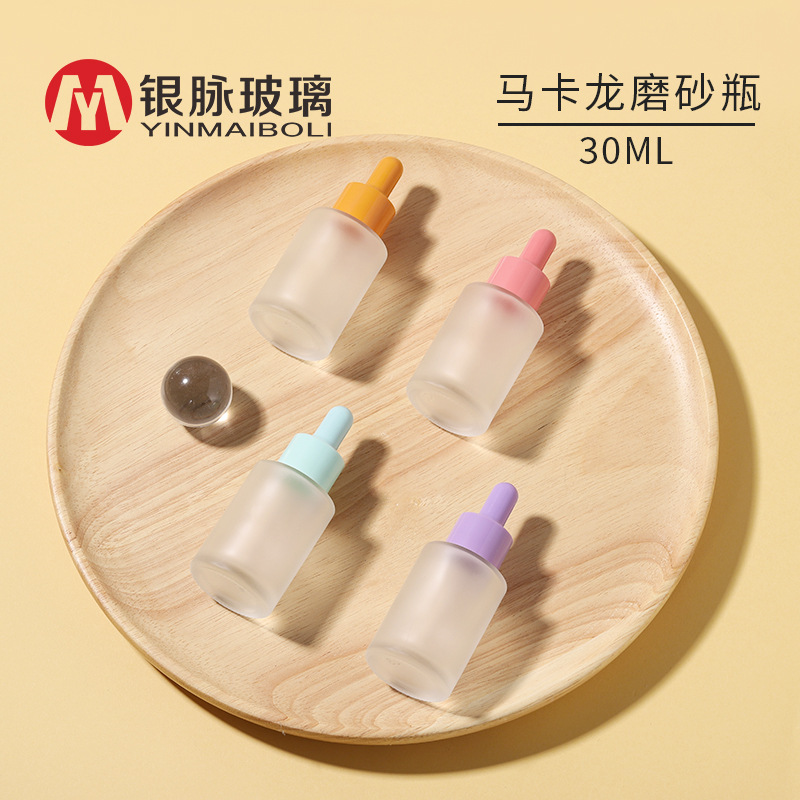 銀脈スポット30mlマカロン平肩瓶透明フロスト精油瓶エッセンス原液瓶スポイト瓶