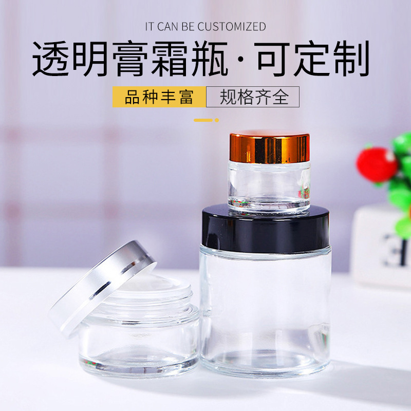 ガラスクリーム瓶20g 30g 50g透明クリーム分注瓶アイクリーム小サンプル瓶ペースト瓶旅行セット