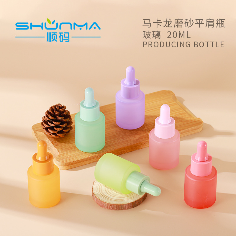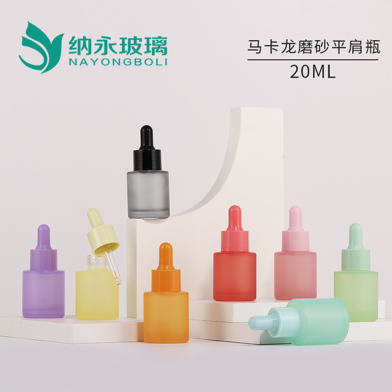 メーカー現物20mlマカロン滴管瓶カラー半透フロスト精華液平肩瓶ガラス精油瓶