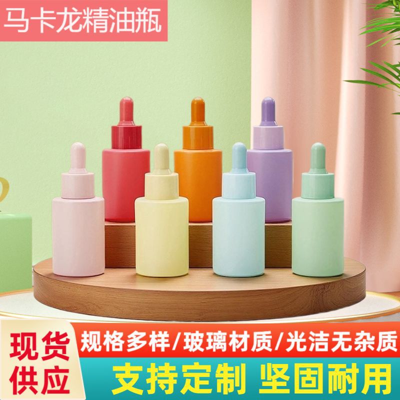 卸売りカラーマカロン精油瓶ゴム滴管ガラス瓶精華液乳液化粧品分注瓶空瓶