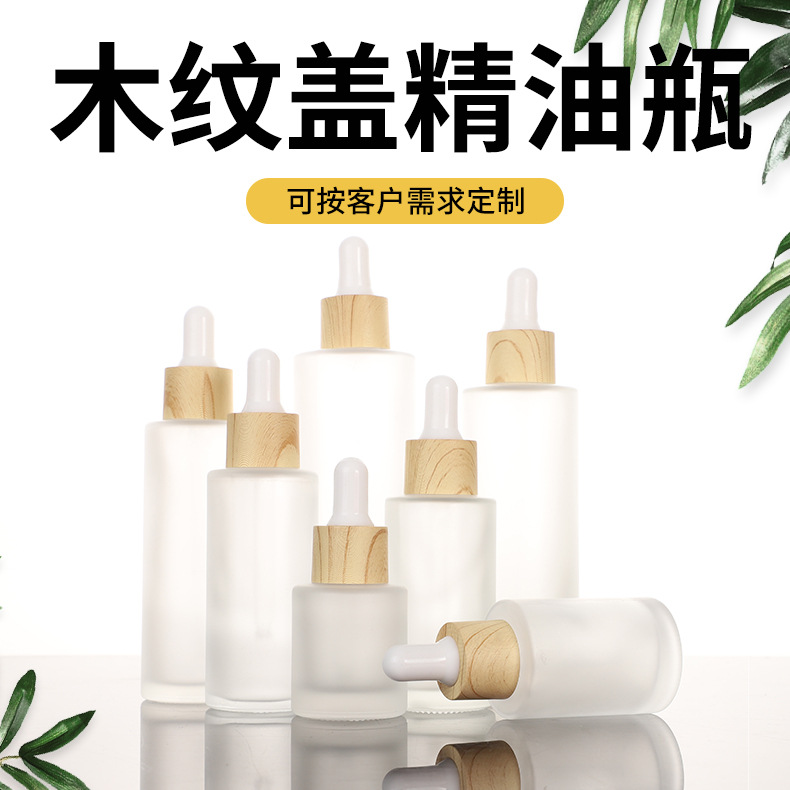 木目蓋滴管精油瓶蒙砂ガラス精華乳液瓶化粧品瓶空瓶サンプル分注瓶