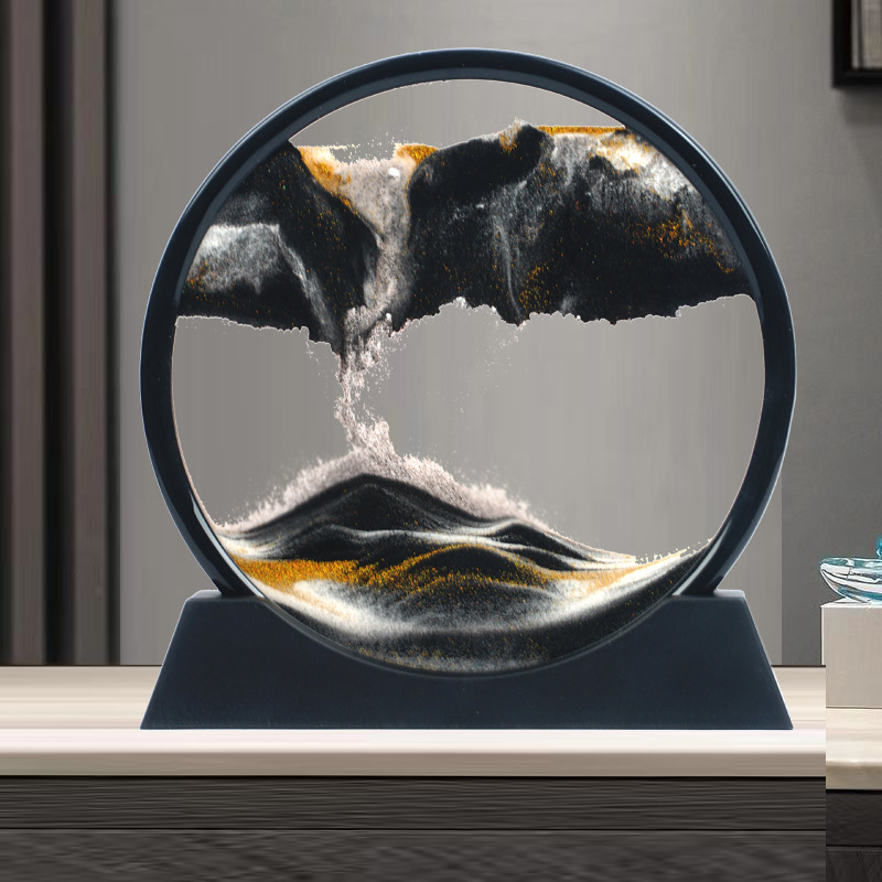 新型シンプル3d山水流砂画円形ガラス工芸品砂時計移転開業創意プレゼント置物