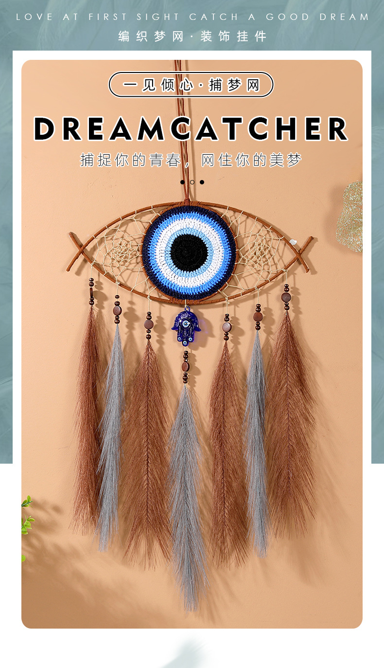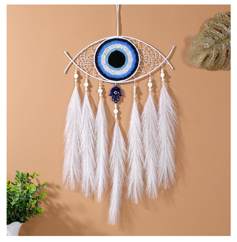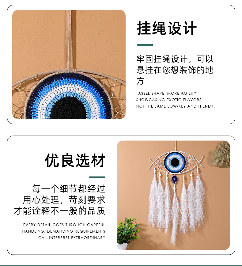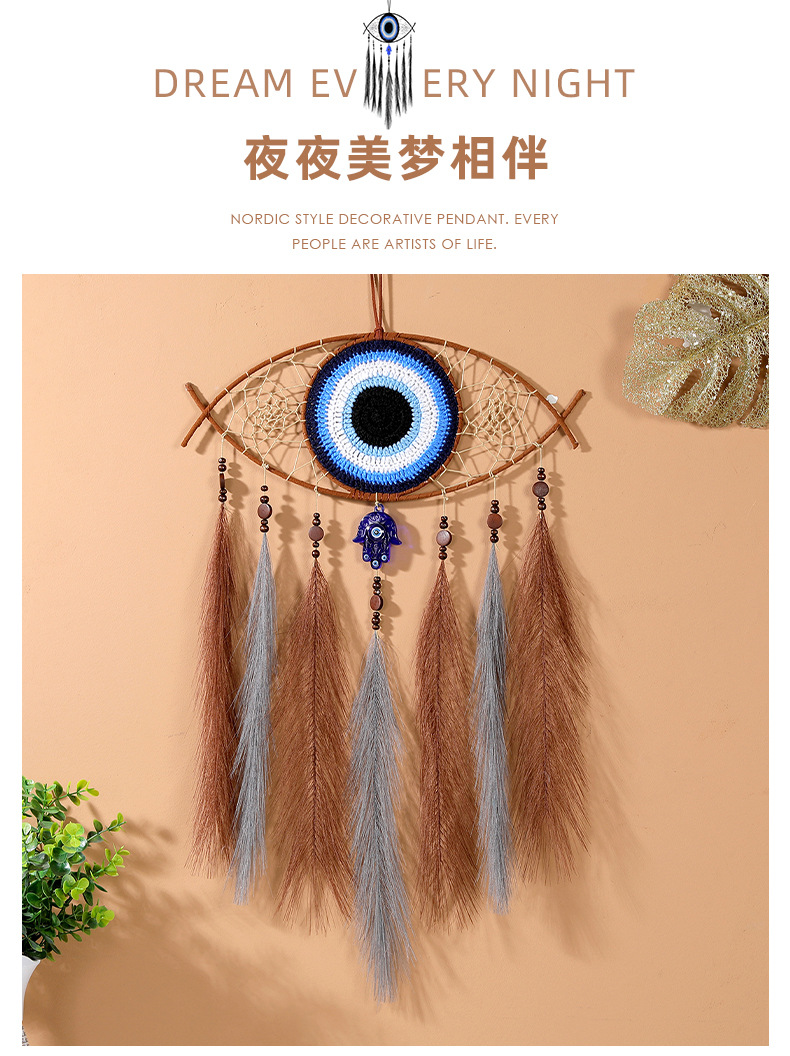 Ins風羽毛捕夢網ストラップデザイン感手織り悪魔の目捕夢網ストラップ壁掛け壁飾り
