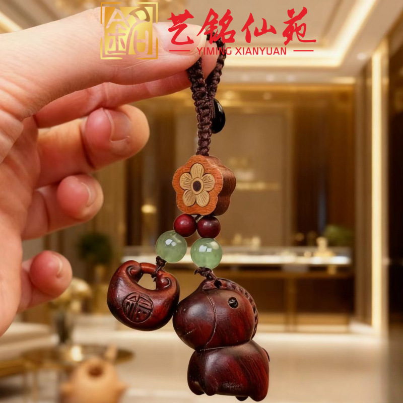 檀木雕刻生肖马手机链挂件艺铭仙苑钥实木雕刻马钥匙扣汽车挂件