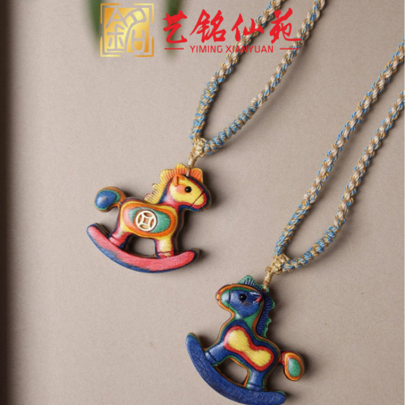 檀木彩虹木雕刻木马项链挂件艺铭仙苑木质生肖马手机链汽车钥匙扣
