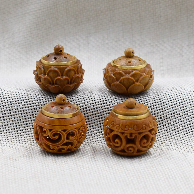 緑檀木香嚢玉携帯チェーンの透かし彫りdiy部品のアクセサリーのペンダントは自分で香丸のペンダントを配合することができます。