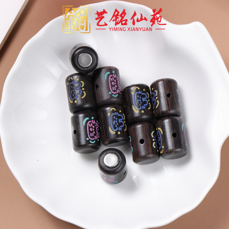 檀木雕刻二饼桶珠磁吸配饰艺铭仙苑黑檀手绘通孔diy手串配件饰品