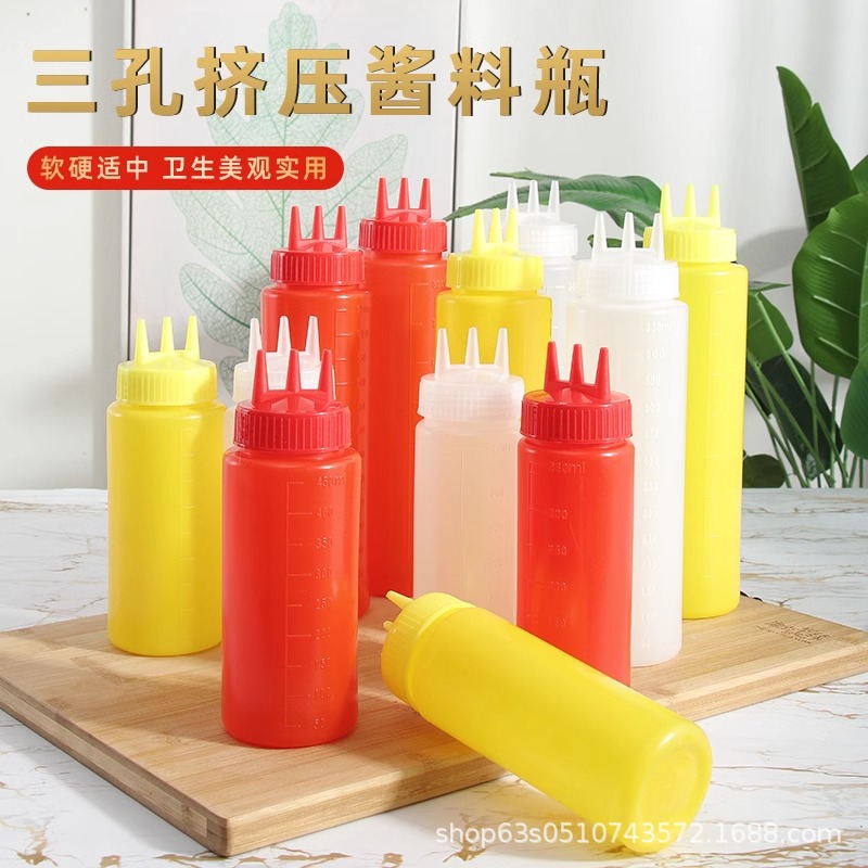 三穴押し出しソース瓶ケチャップサラダ調味神器押し出し業務用プラスチック三口クリーム押し出しソース瓶