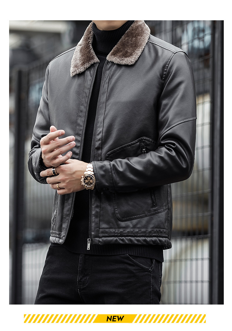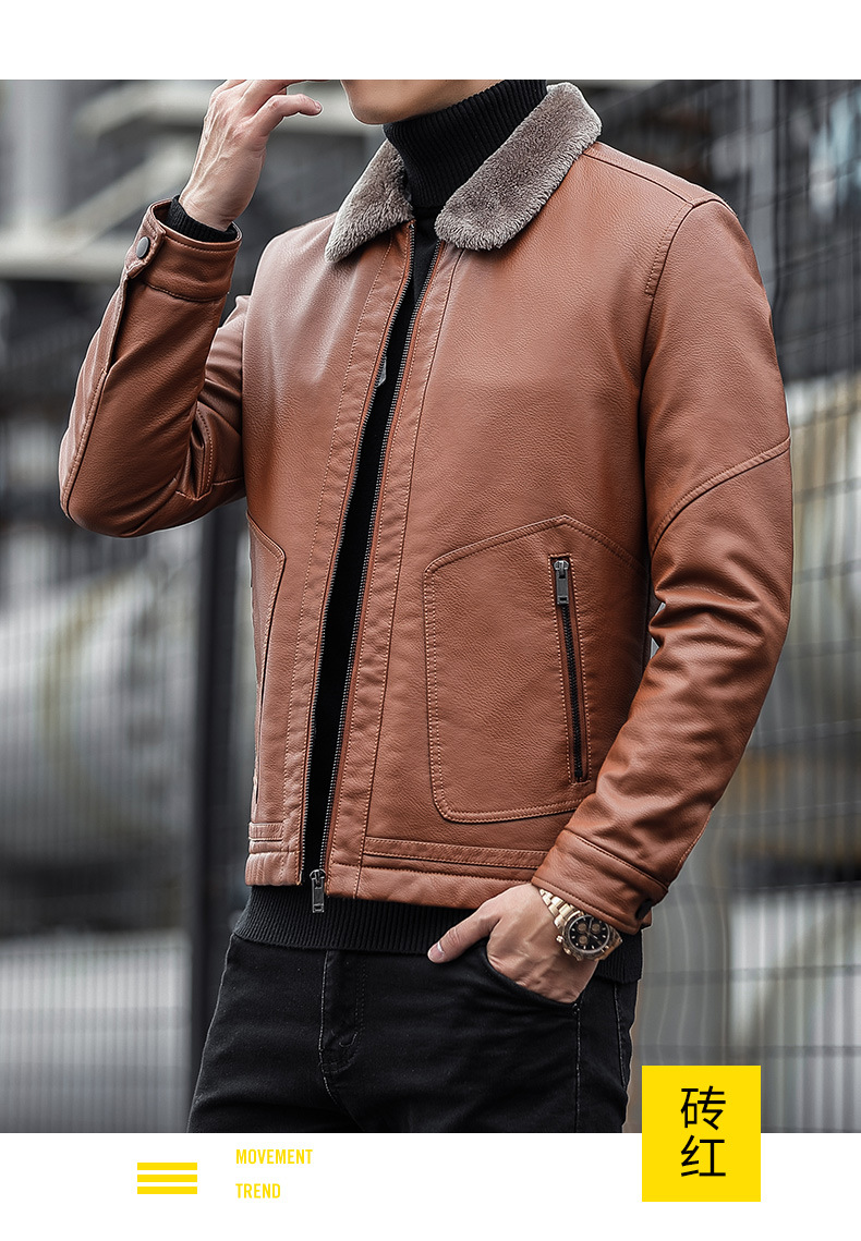 2023新品上着厚手パイル革ジャケット秋冬メンズ革衣pu皮軽いビジネスカジュアル角襟ファッション百