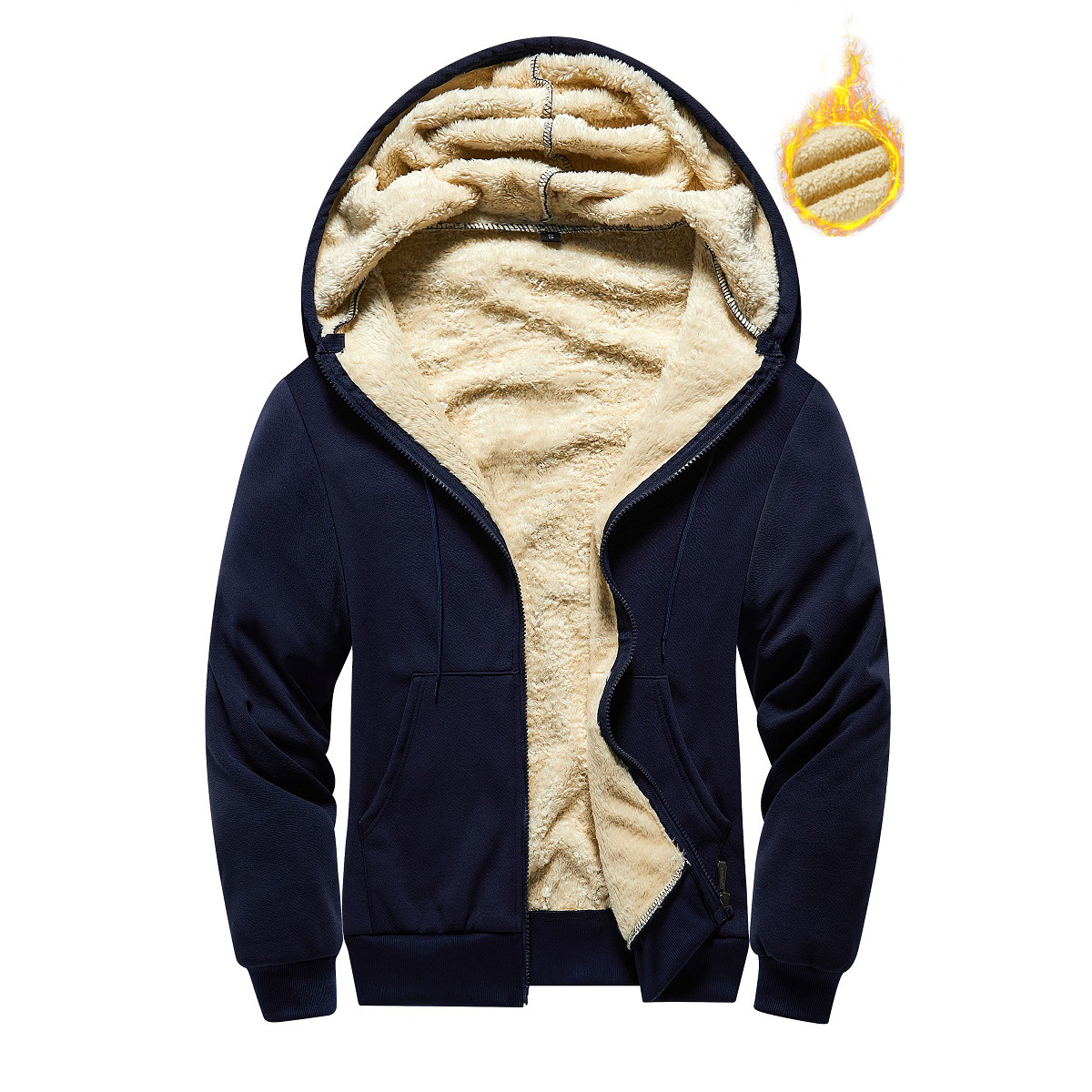 跨境羊羔绒卫衣运动保暖男冬季加厚加绒连帽休闲开衫外套搭配