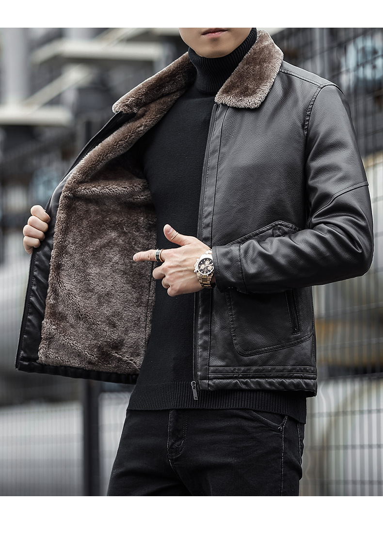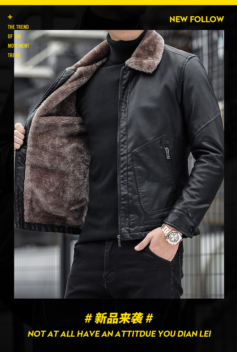 2023新品秋冬ベルベット厚手メンズレザージャケット厚手パイルコートカジュアルメンズボディースーツ上着