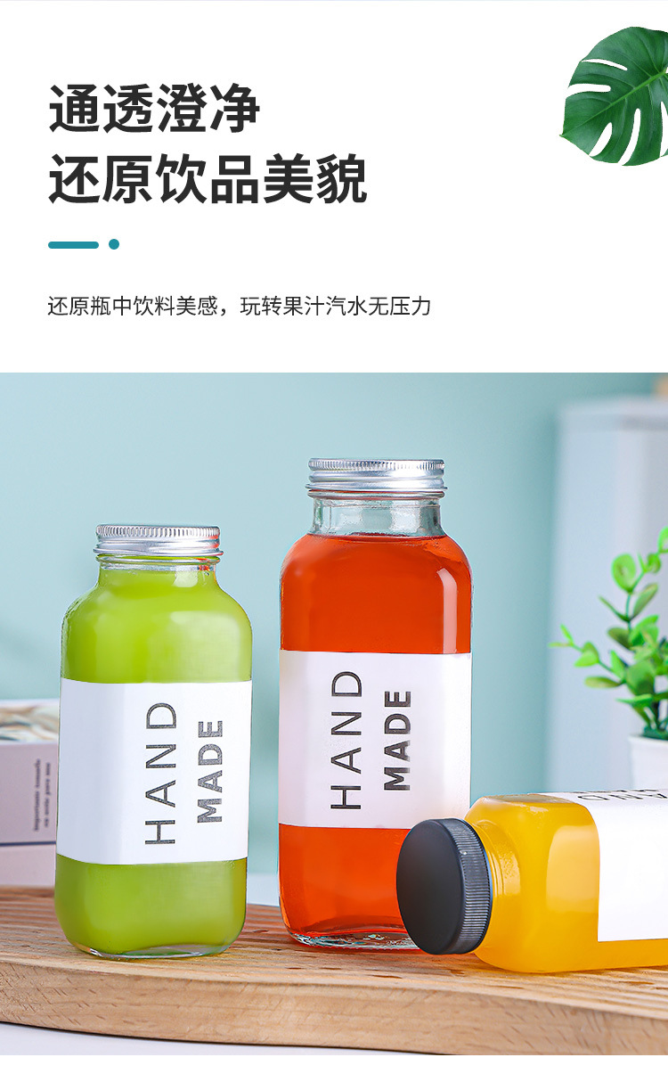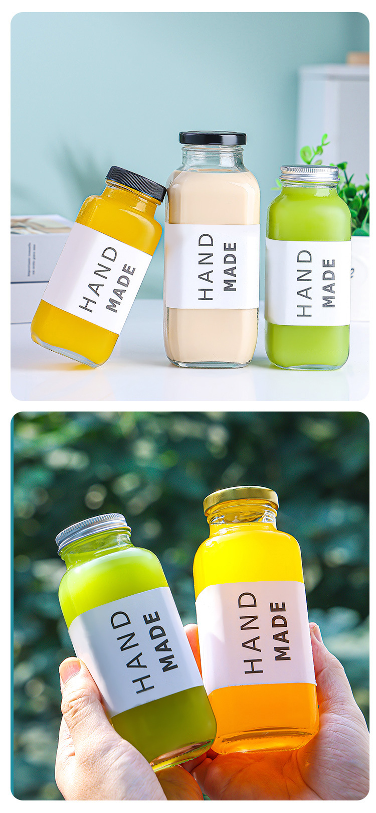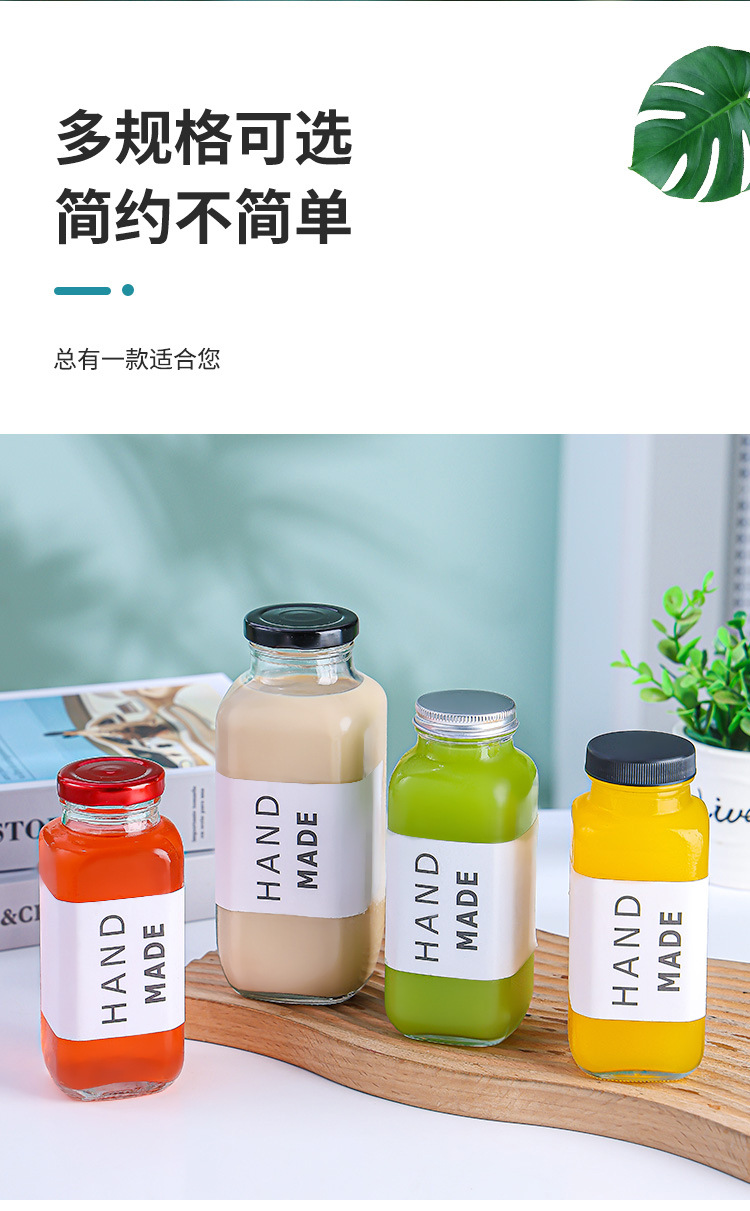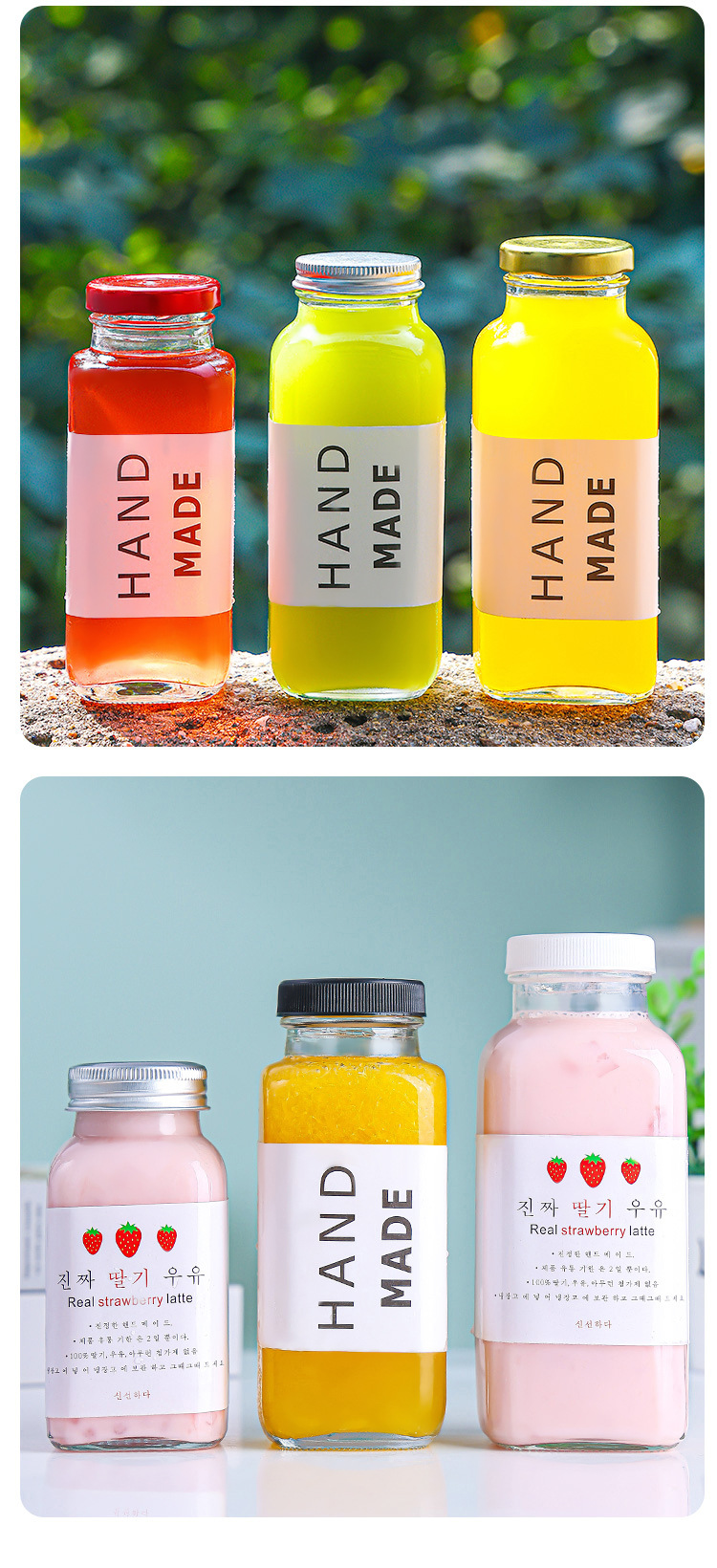 四角い飲料瓶350mlアルミ蓋コーヒー哺乳茶瓶透明シールジュース牛乳瓶ガラスヨーグルト瓶