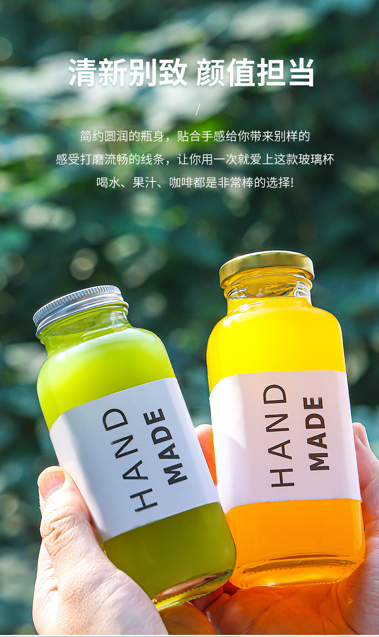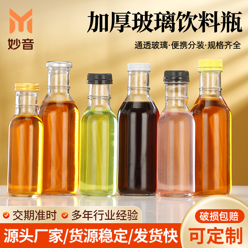 沙棘汁玻璃瓶透明玻璃饮料瓶果汁奶茶瓶沙拉酱番茄分装空瓶批发