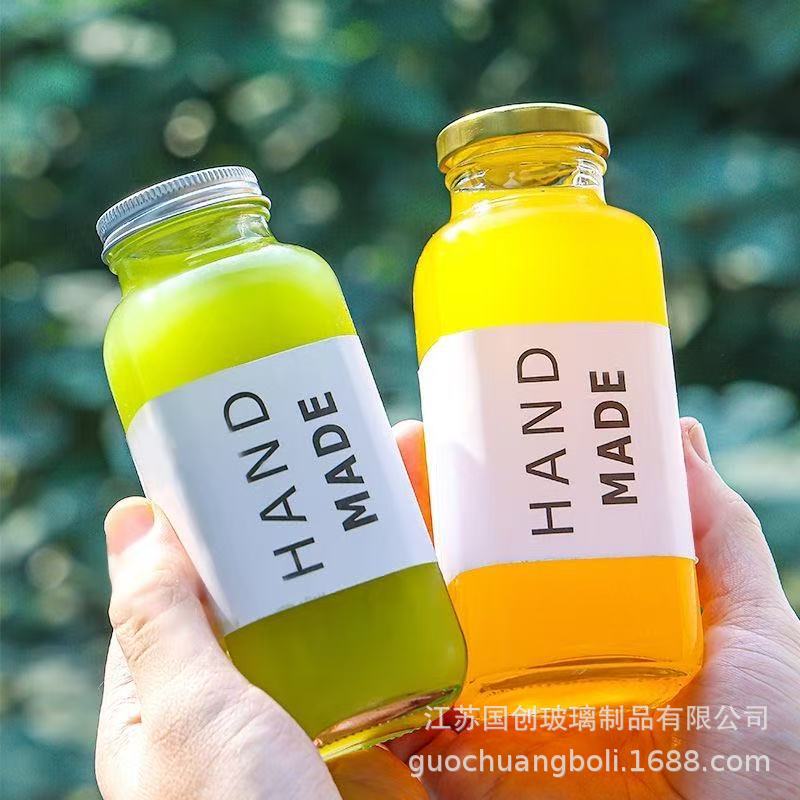 大口飲料ボトル空のガラスボトル卸売 350 ミリリットル牛乳ボトルインジュース密封ボトルホットドリンク再包装テイクアウトボトル