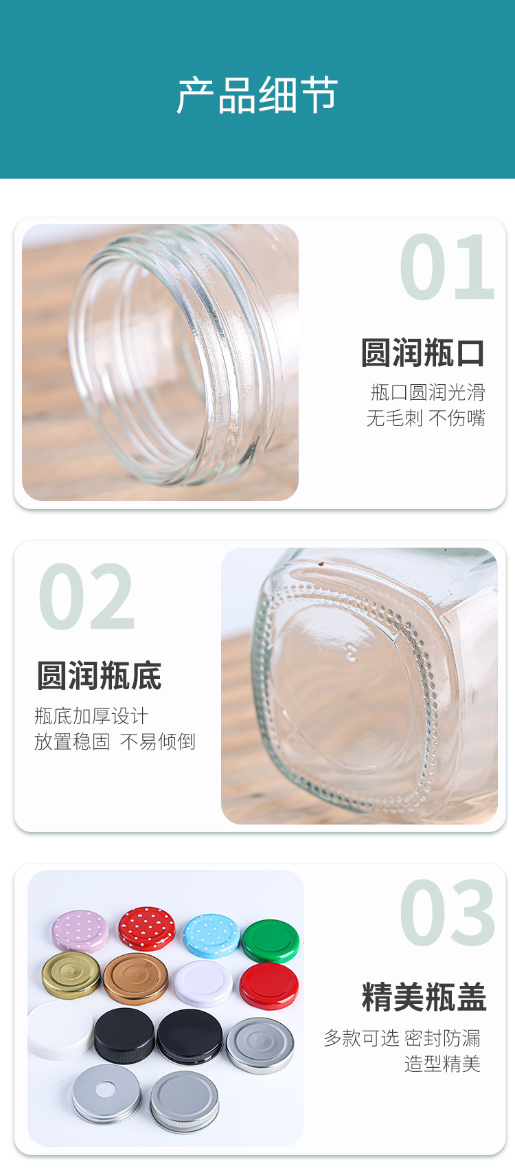 送料無料密封された漏れ防止蜂蜜ボトル六角形ガラス増粘蜂蜜ボトルガラスボトル蓋付き保存瓶