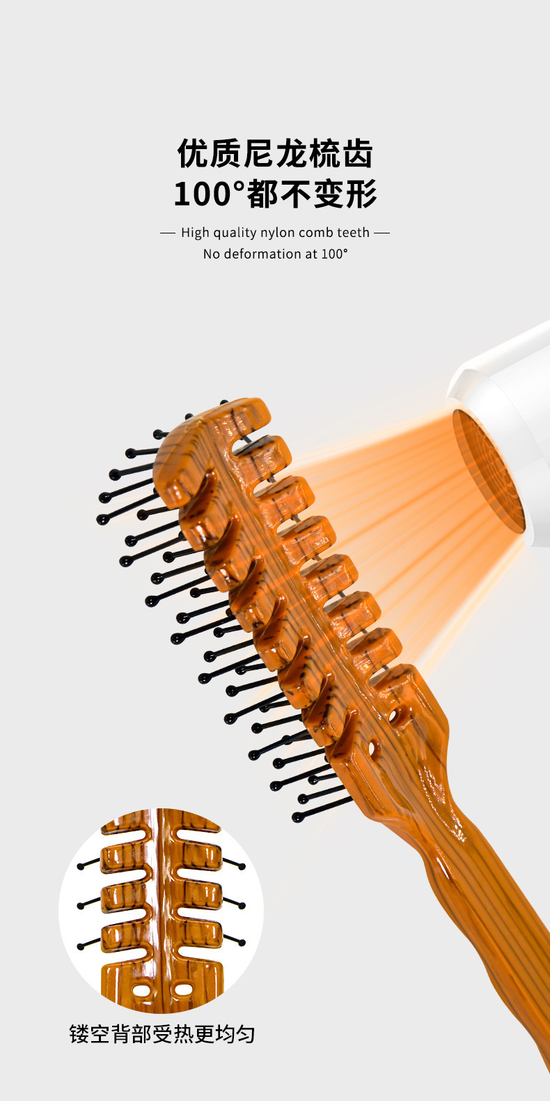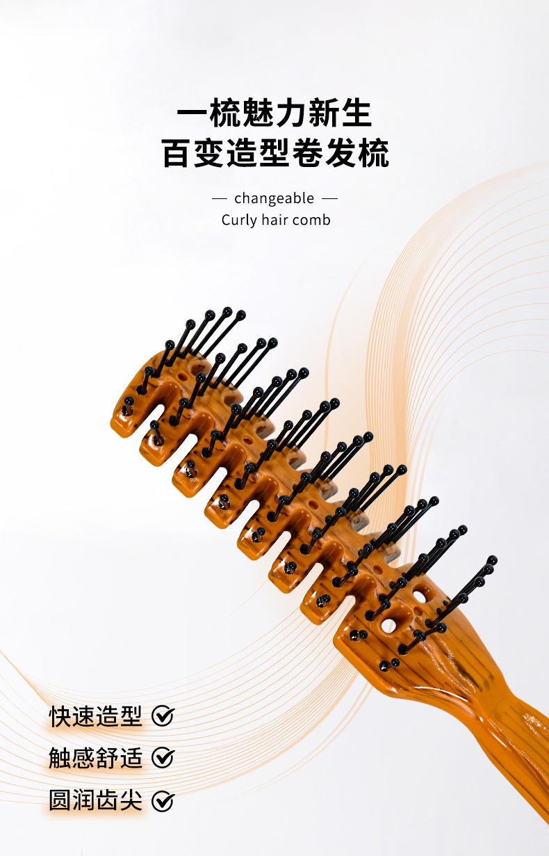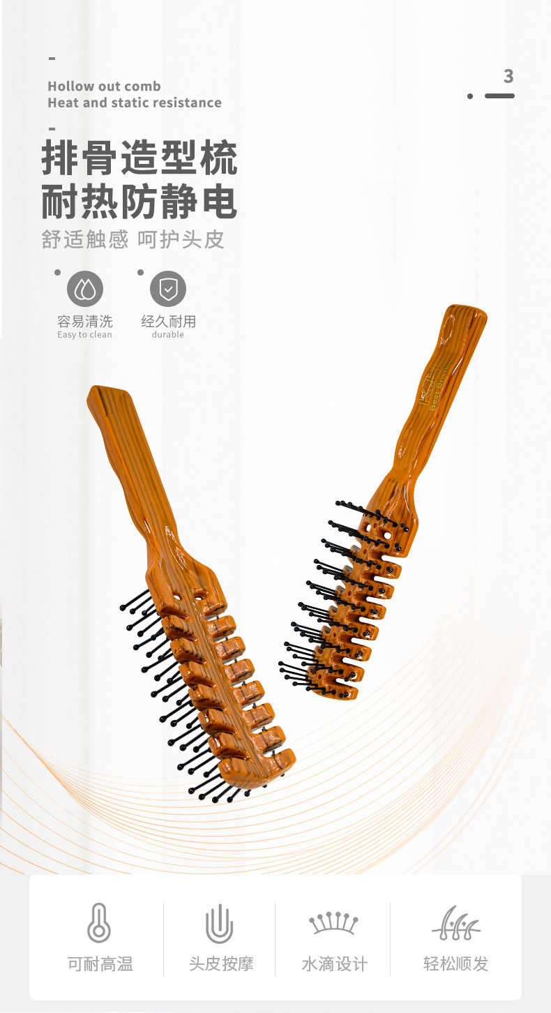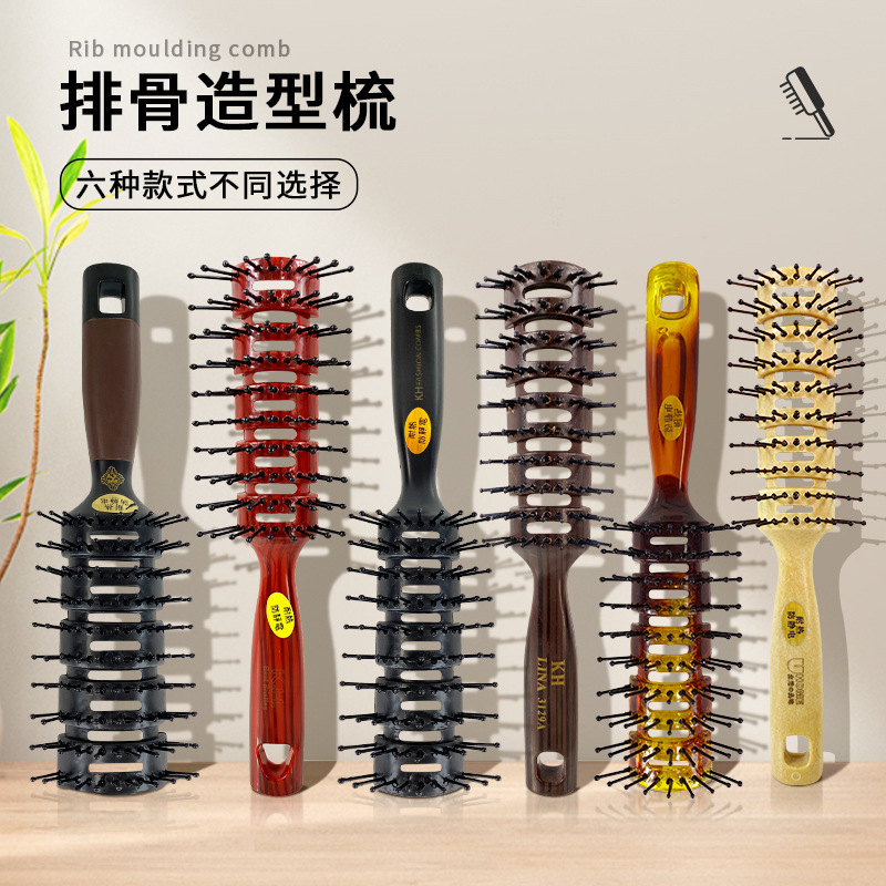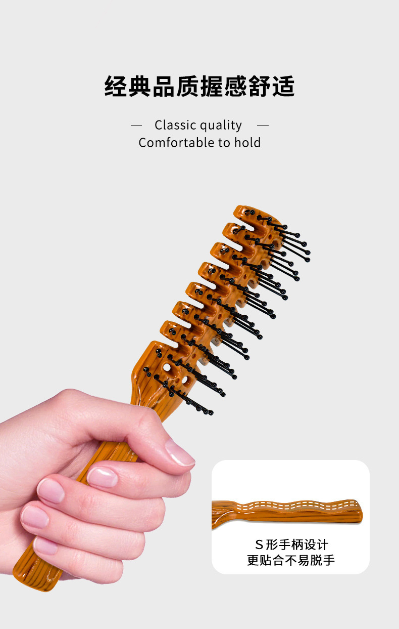 現物レトロ木目排骨櫛背頭油頭櫛乾湿両用直髪巻き髪吹き形美髪櫛