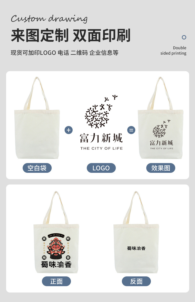 手提げキャンバスバッグオーダーメイド広告アイデアdiyショッピングキャンバスバッグブランクキャンバスバッグオーダーメイドins高级感