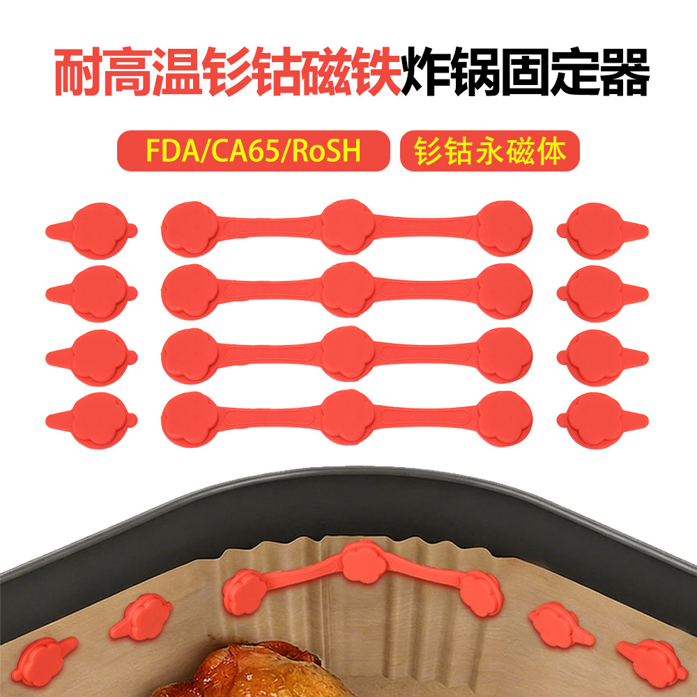 アマゾンで人気のエアフライヤー用磁気シリコン固定具、羊皮紙ライナー、高温耐性コバルト磁石留め具