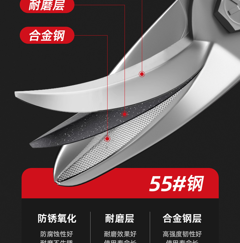 铁皮剪65锰钢加厚尖弯嘴龙骨铝扣板剥线剪多功能强力剪切神器