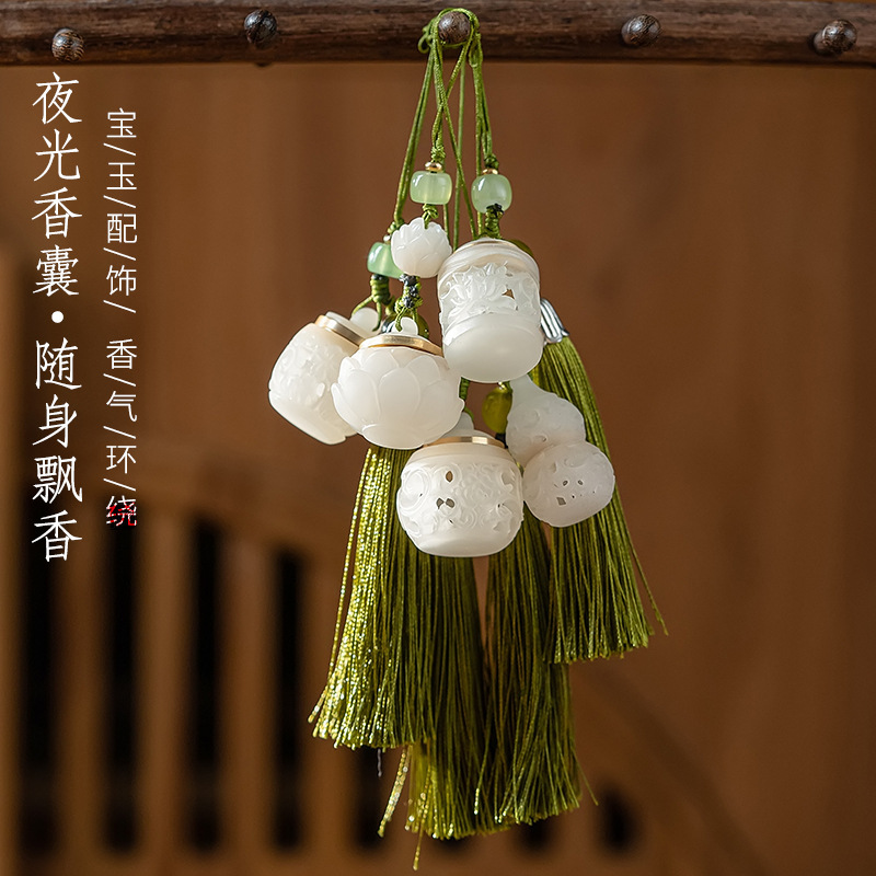 夜光石が光る透かし彫りの香嚢は香丸香薫を開けて古風漢服のペンダントをつけて日常的に持ち歩くことができます。