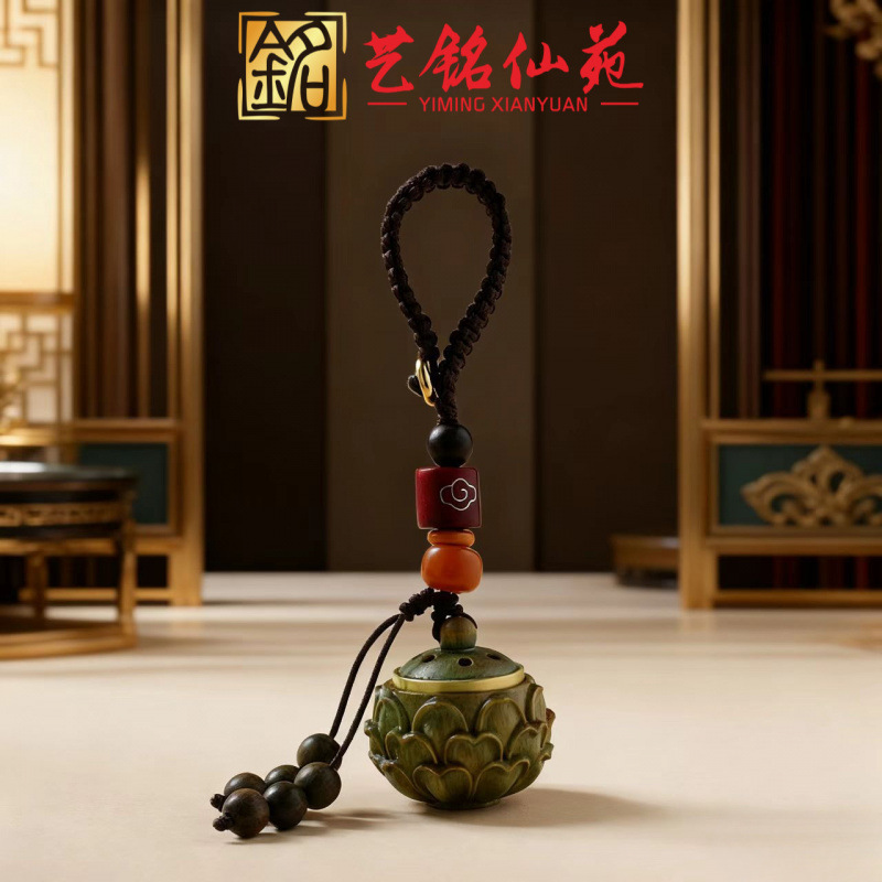中国緑白檀中空サシェ西市ランタン牡丹宝蓮ハンドルポットディフューザーペンダント白檀ジュエリー装飾
