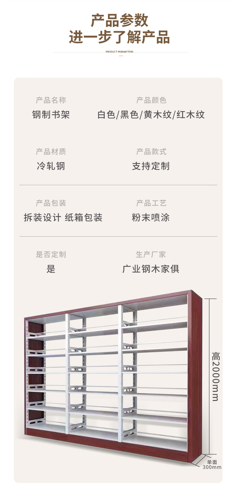 学校図書館書店読書室片面・両面スチール製本棚家庭用書籍室大型収納棚