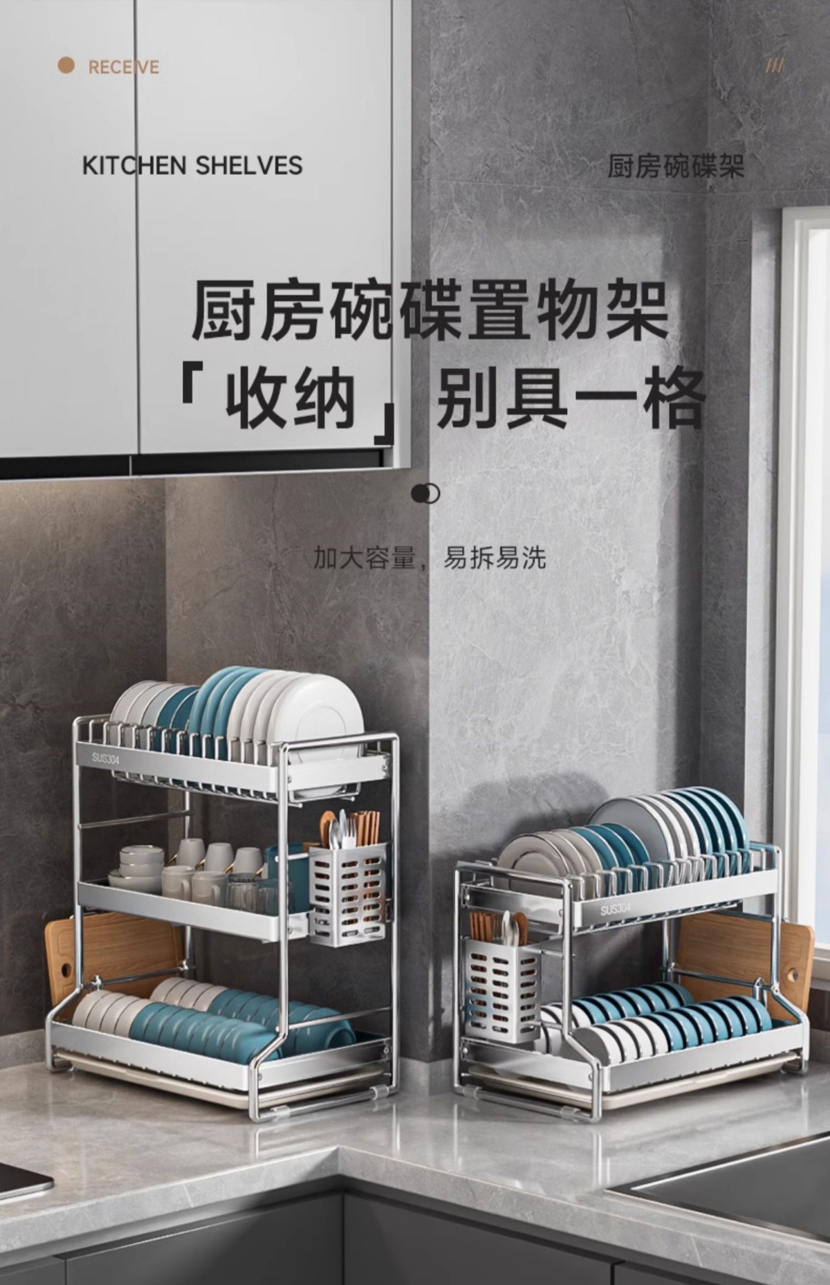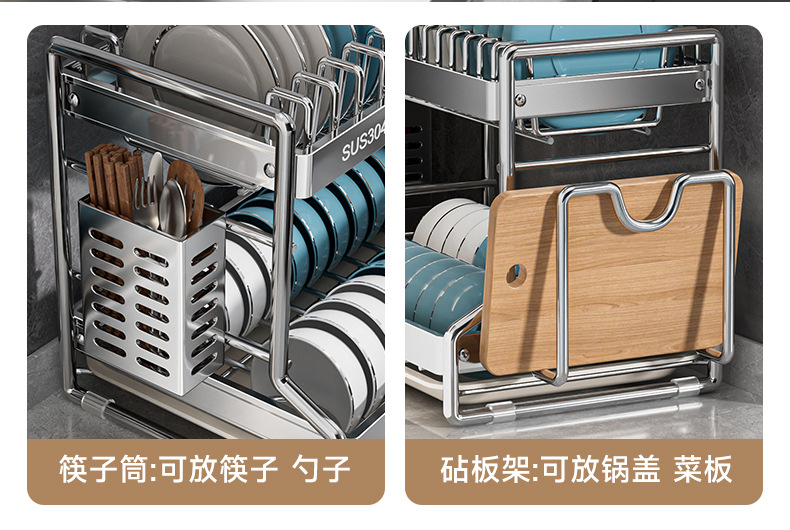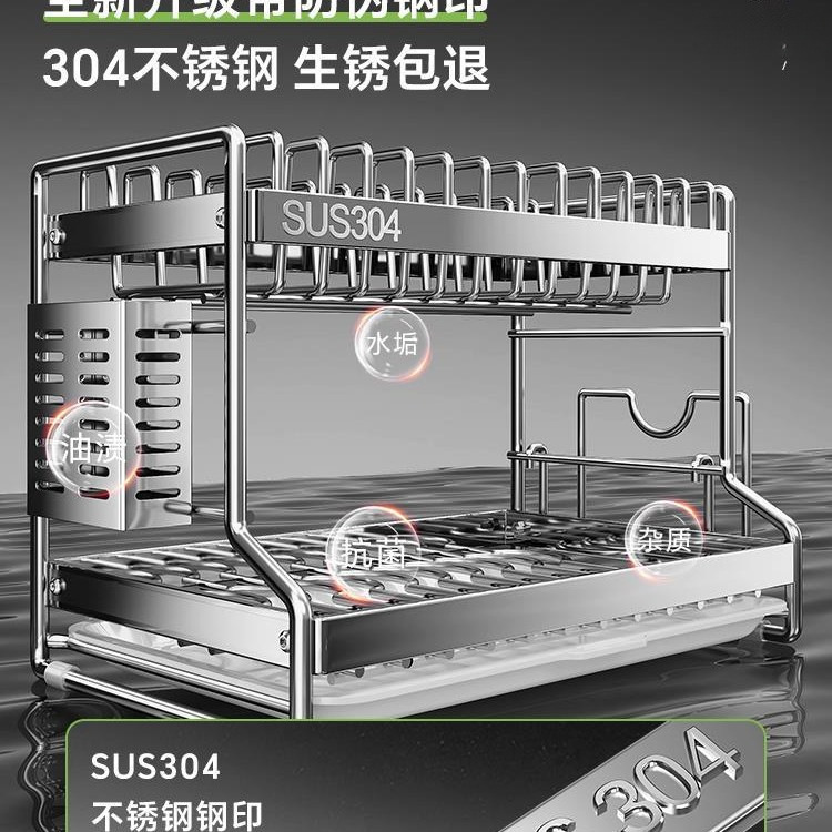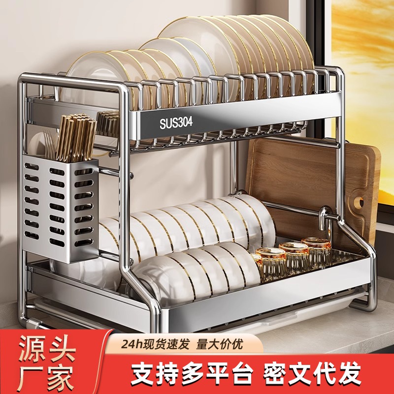 碗碟收纳架304不锈钢沥水架家用多层碗架厨房置物架放碗盘筷碗柜