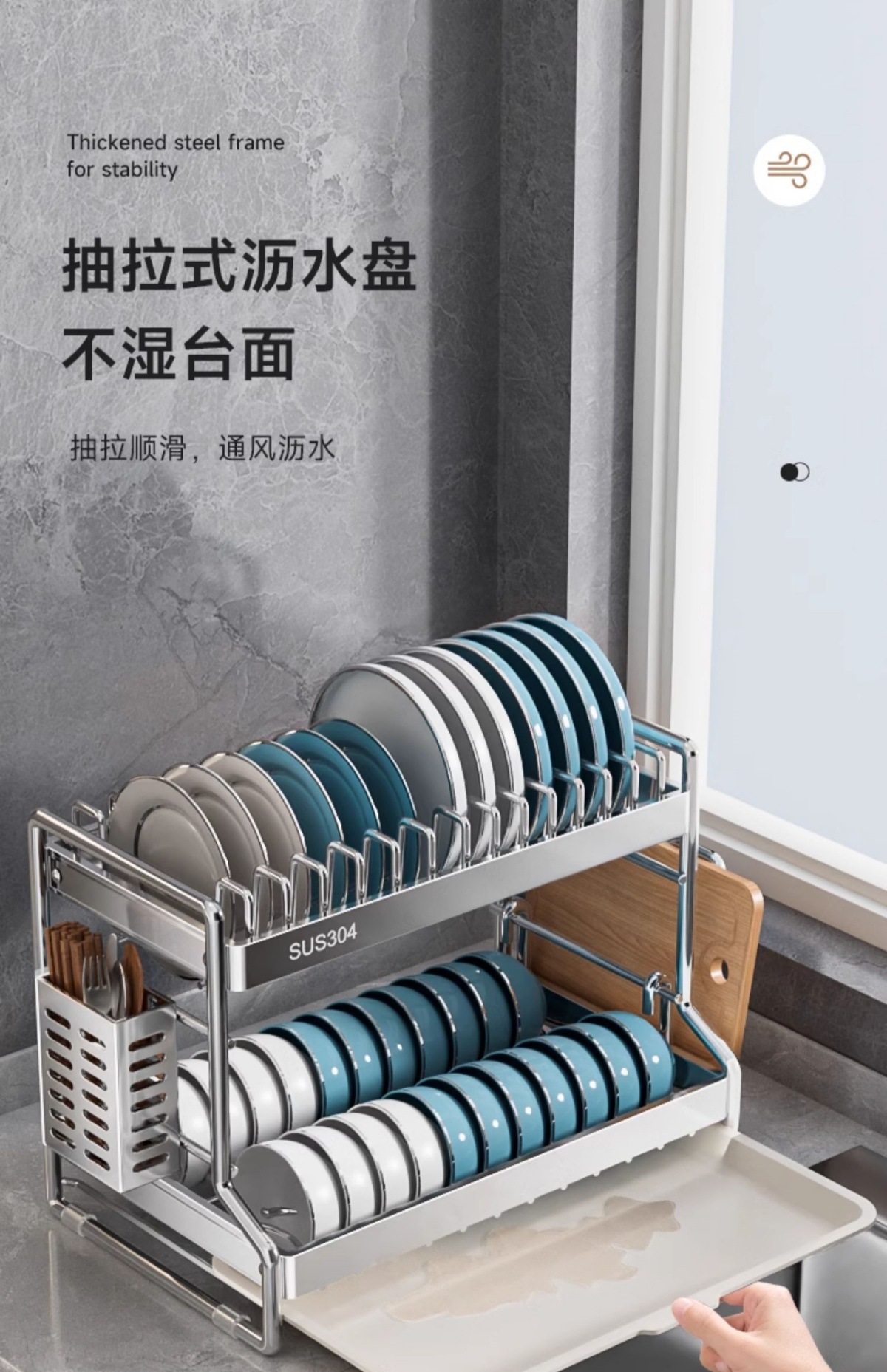 304ステンレスの碗の皿の収納棚の排水棚の台所の物置棚の碗の箸の刃物の家庭用多機能の碗の皿棚