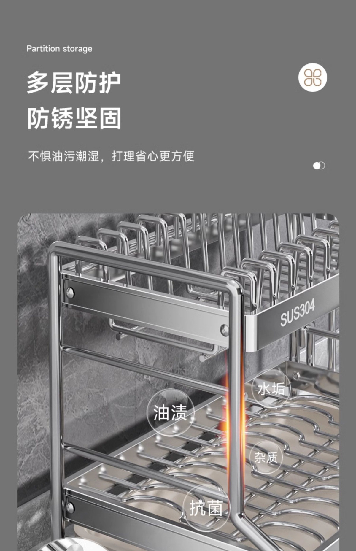 食器棚収納棚食器棚排水棚304ステンレスキッチン棚食器皿多機能食器棚