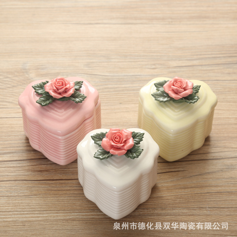 陶器製のジュエリーボックス、バラの花のジュエリーボックス、結婚式のクリエイティブなヨーロピアンスタイルのキャンディボックス、お土産の包装箱、ヨーロピアンスタイル