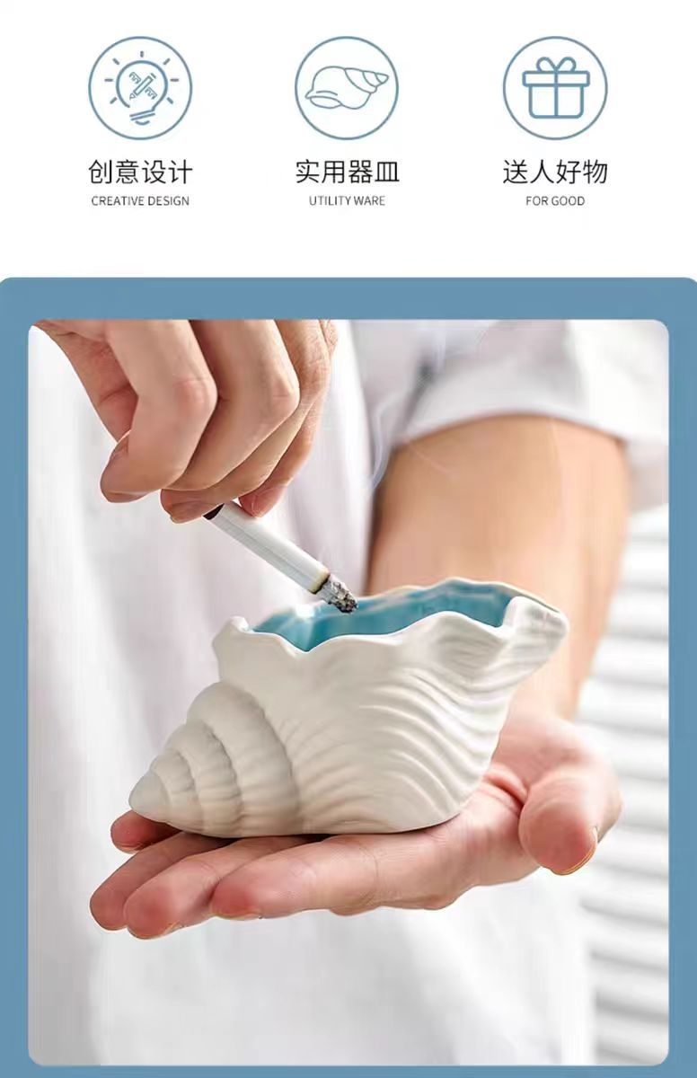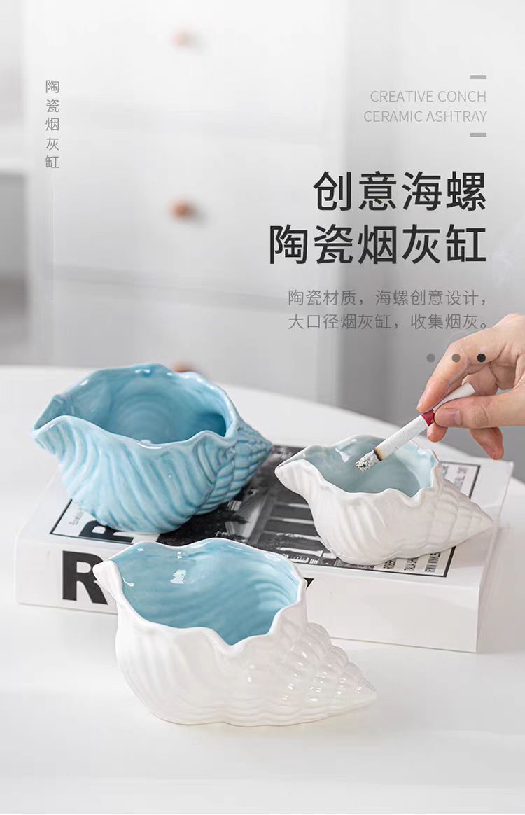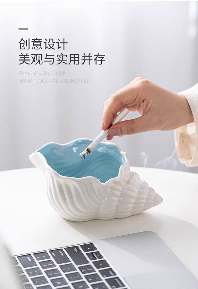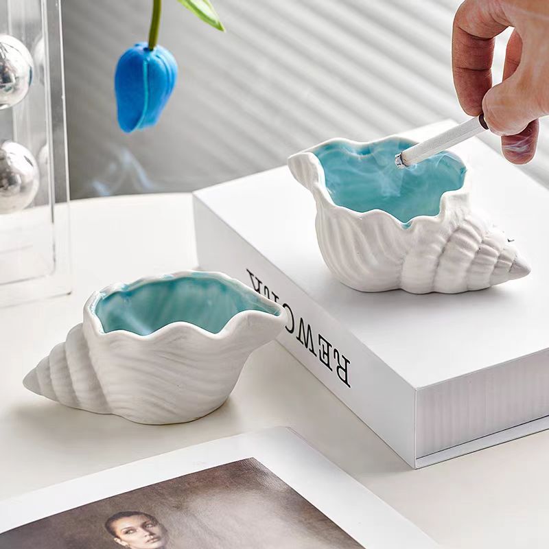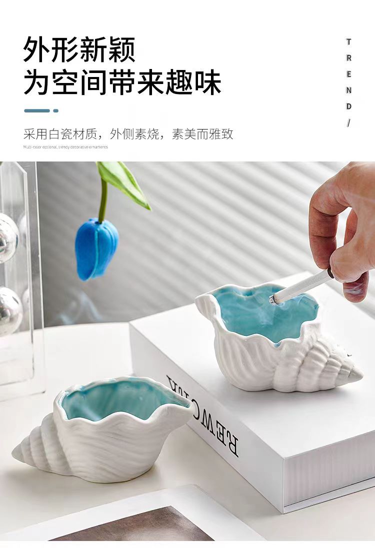 セラミック灰皿クリエイティブパーソナライズされたトレンディなホームリビングルームインスタイル飛散防止灰大型法螺貝収納装飾品