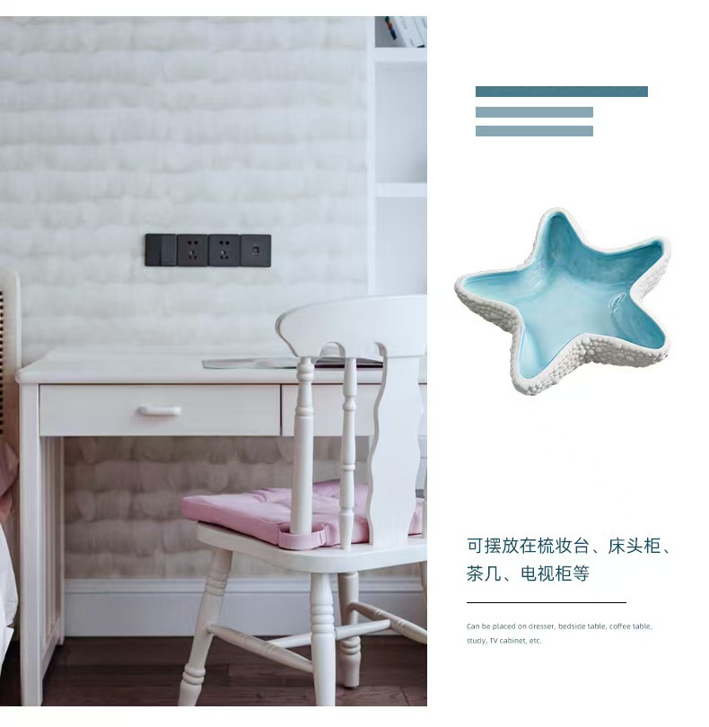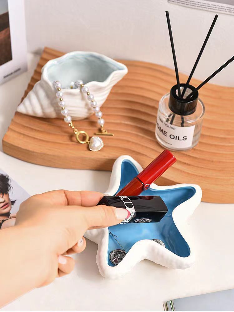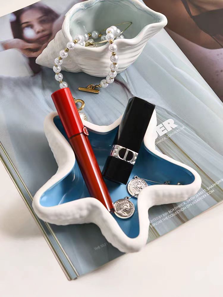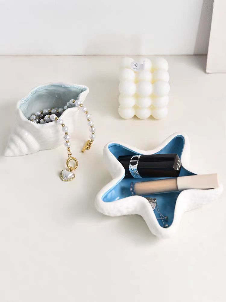 创意个性ins风高级感海星螺贝壳陶瓷家居收纳摆件跨境珠宝首饰