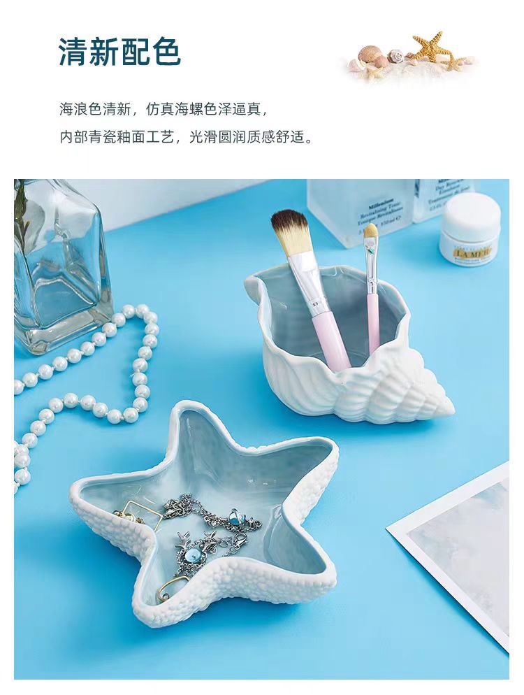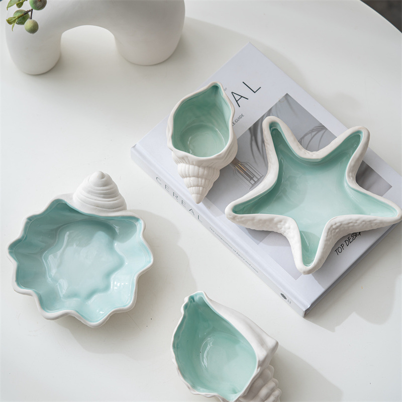 クロスボーダー陶磁器サザエアクセサリーキー収納盤海星灰皿ホーム装飾置物ジュエリー展示トレー