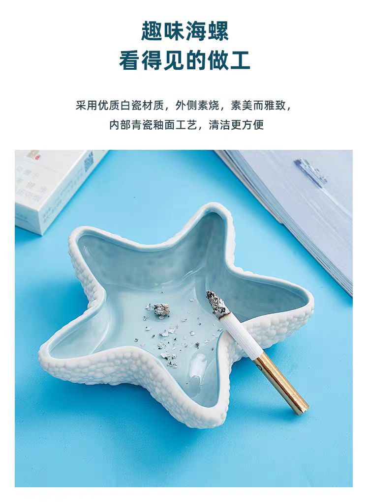 シンプルでクリエイティブなセラミック製のヒトデ・貝殻灰皿、オフィスやリビングの装飾品、工芸品、ジュエリーボックス