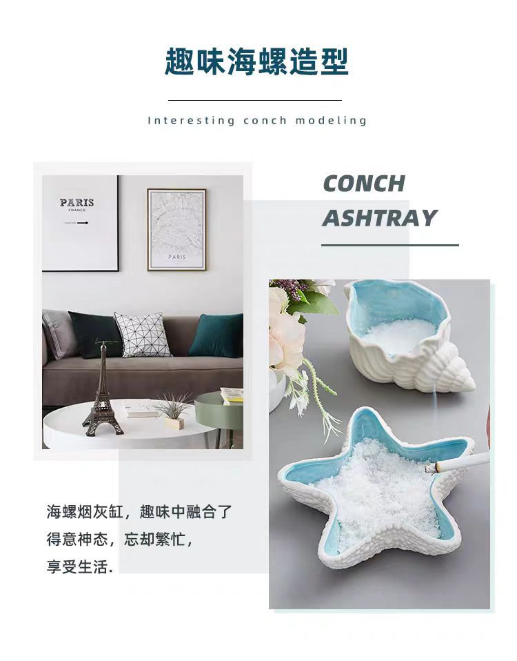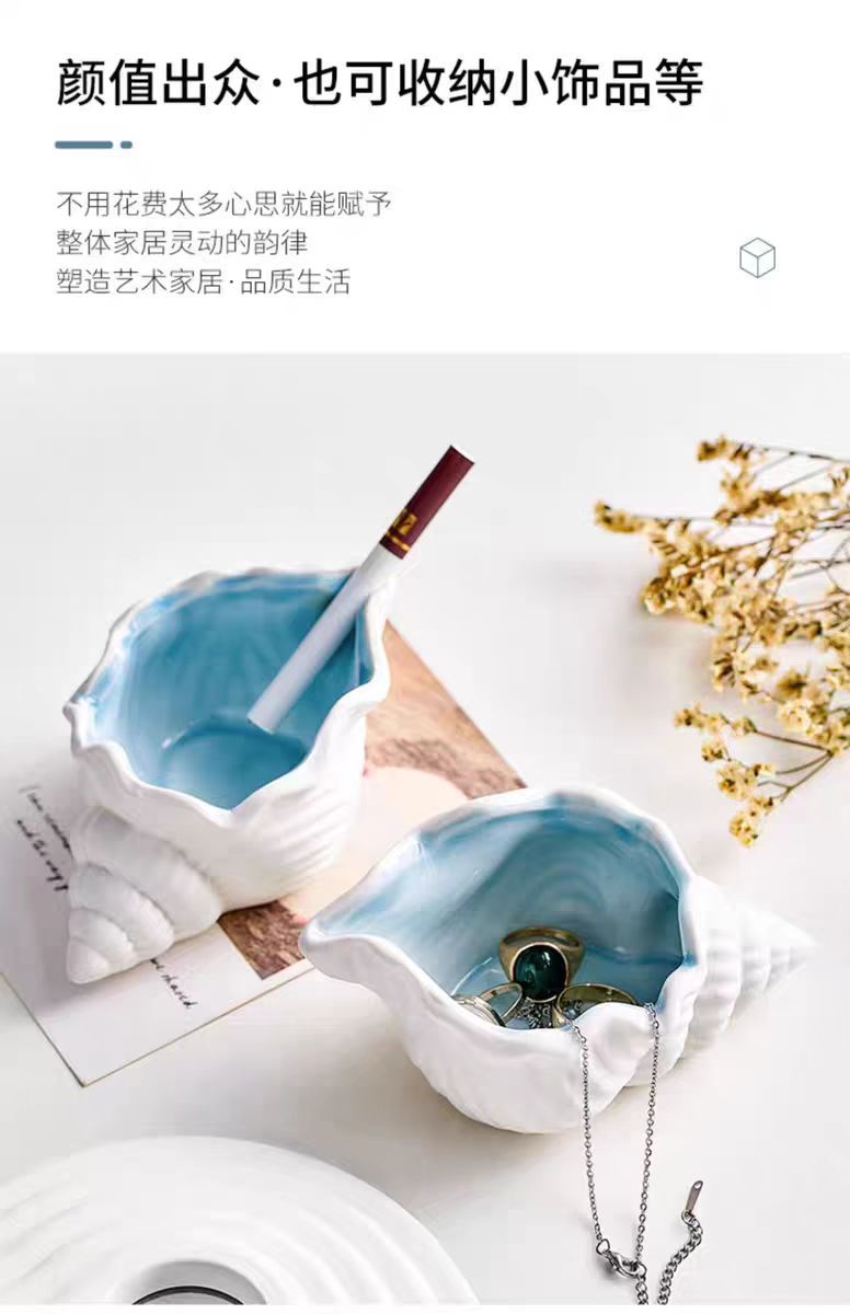 アマゾンセラミック灰皿創意個性ファッション家庭用リビングルームins風高級感サザエ収納置物