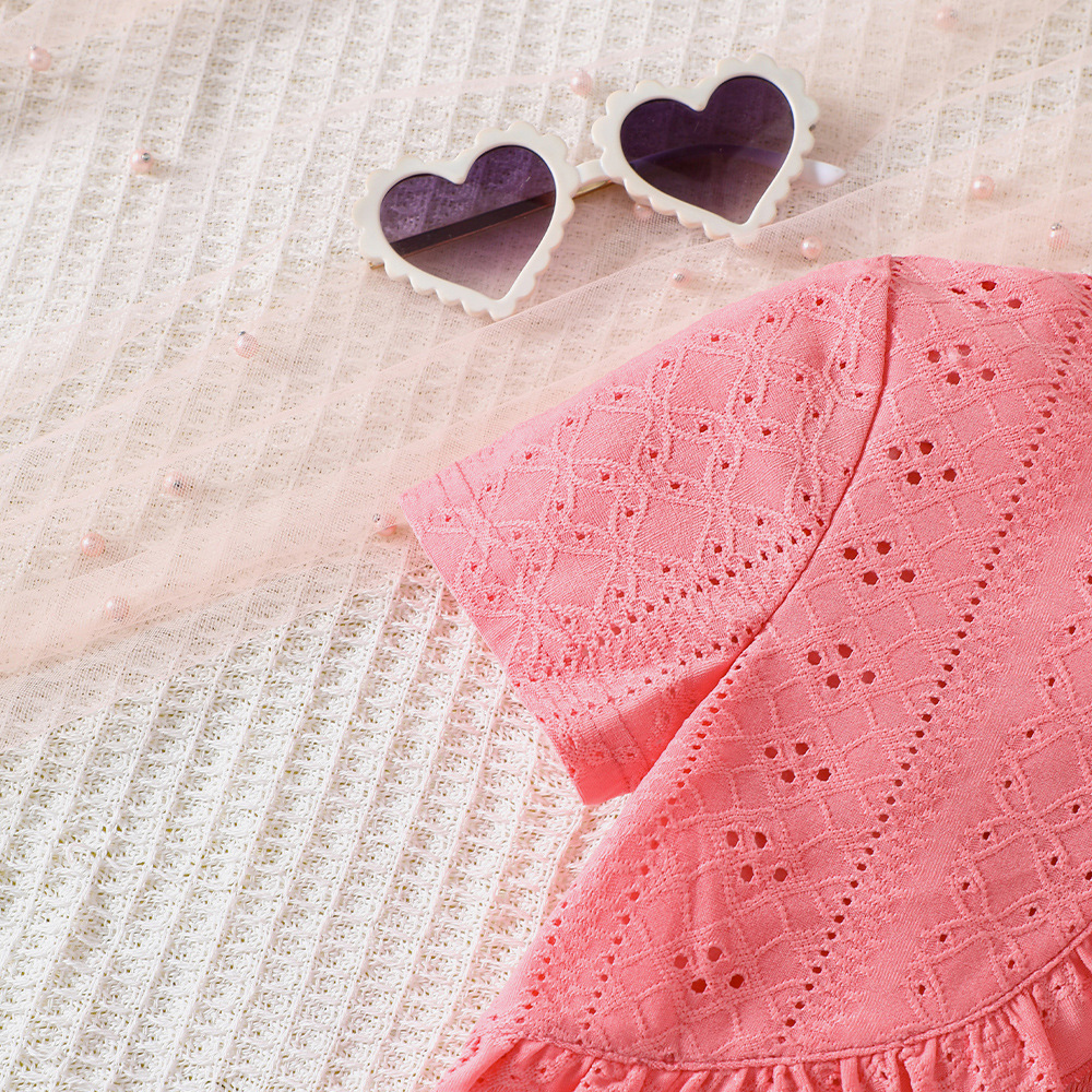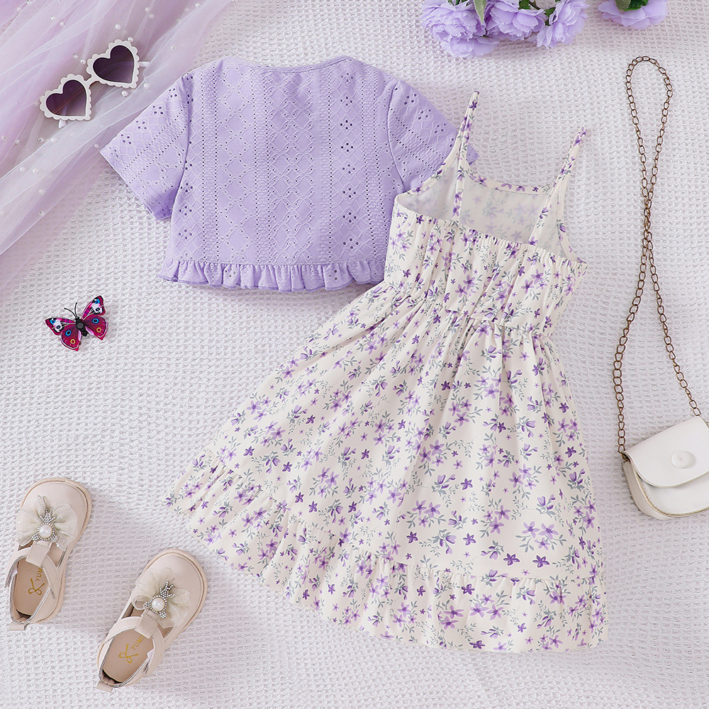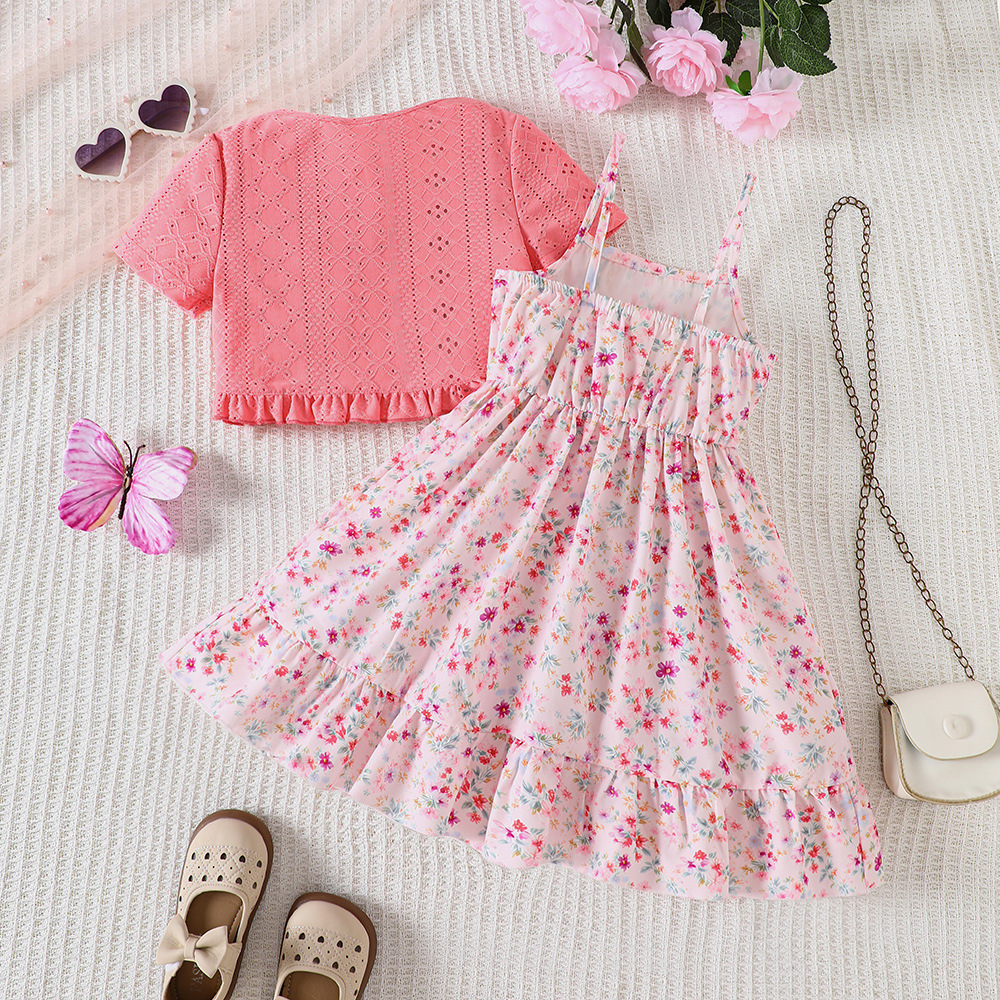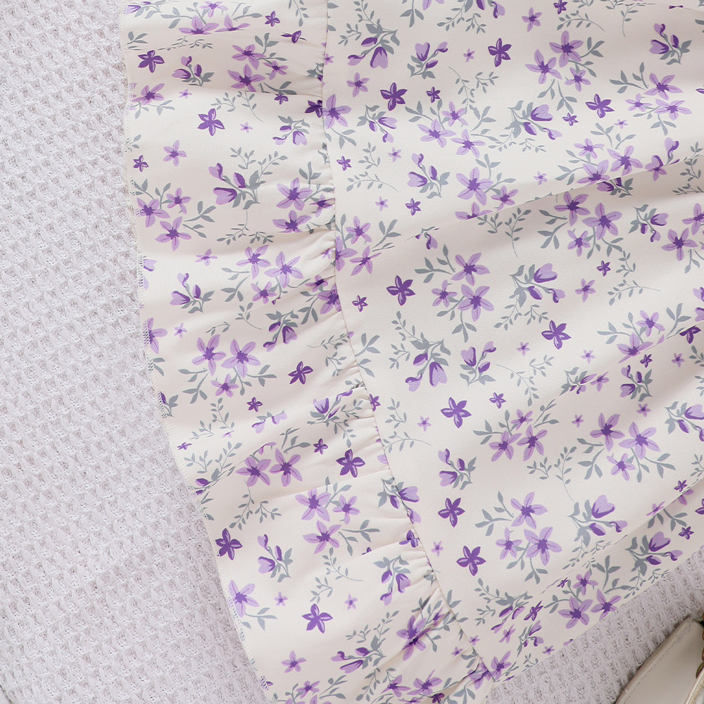 外国貿易の子供のガーターはワンピースの2025夏の小さい花の結び目の多層のケーキのスカートの女の子を持ちます。