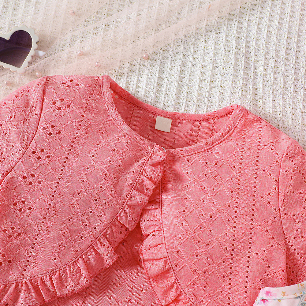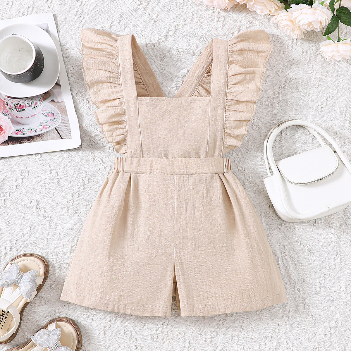 EW外贸童装 中小童新品女童春夏款荷叶边纯色短款连体裤K348-D