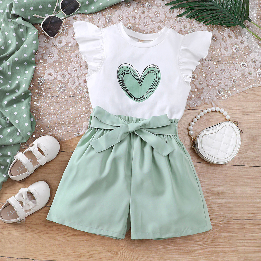 EW外国貿易子供服の中の子供の新商品の女の子の夏の愛のプリントの上着のショートパンツのスーツXHDTZ1013