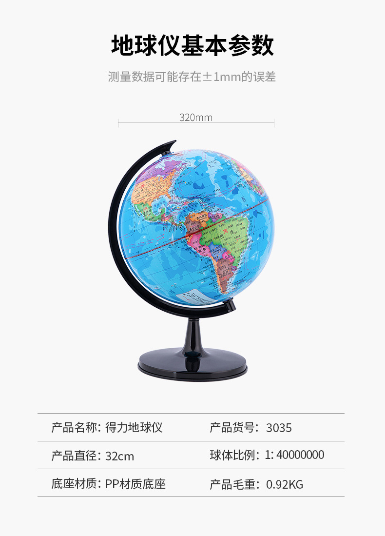 得力3035地球儀32cmクリア地球儀中国語地形教育地球儀文房具卸売り