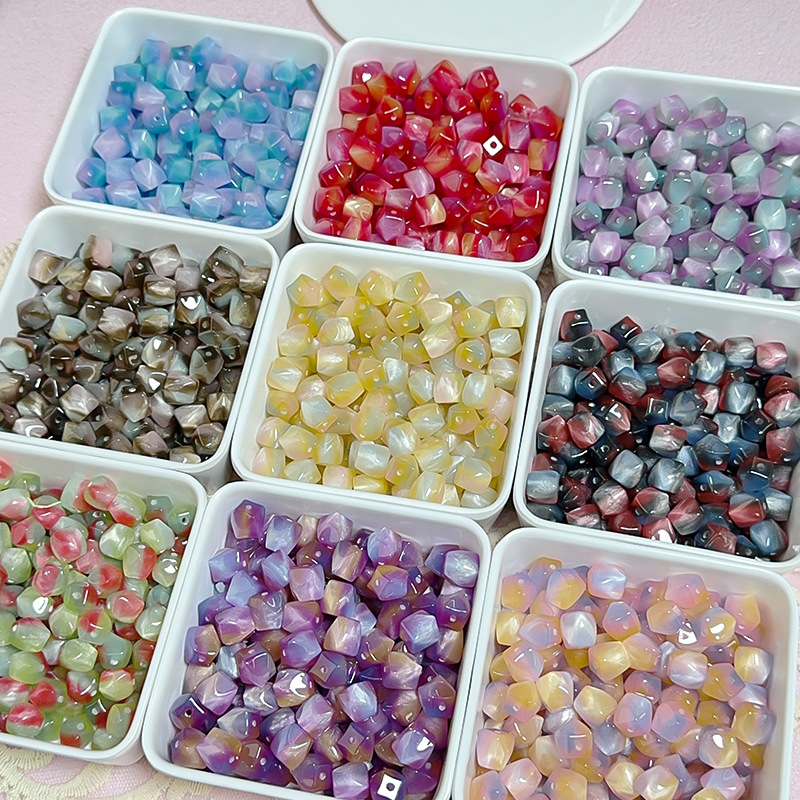 春の新型樹脂異形幻彩カット面ぼかし三色樹脂散珠DIYブレスレット材料部品卸売り