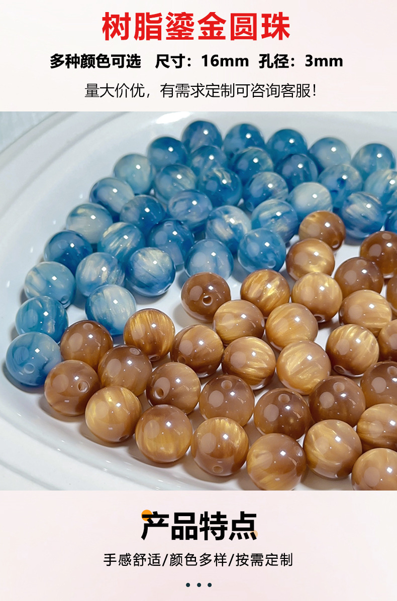 爆金樹脂金油絵ビーズ16mm直孔丸ビーズ散ロットdiyブレスレット携帯チェーン車掛部品